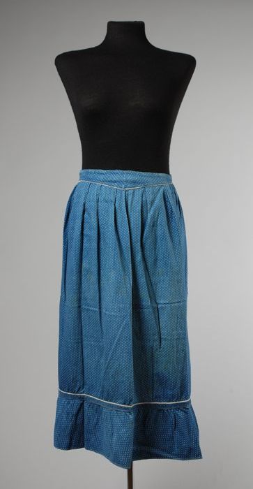 Muts, wit katoenen bol gerimpeld aan een blauwe kato...