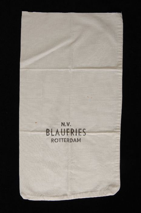 Langwerpige zak van wit katoen met opdruk in zwart "...