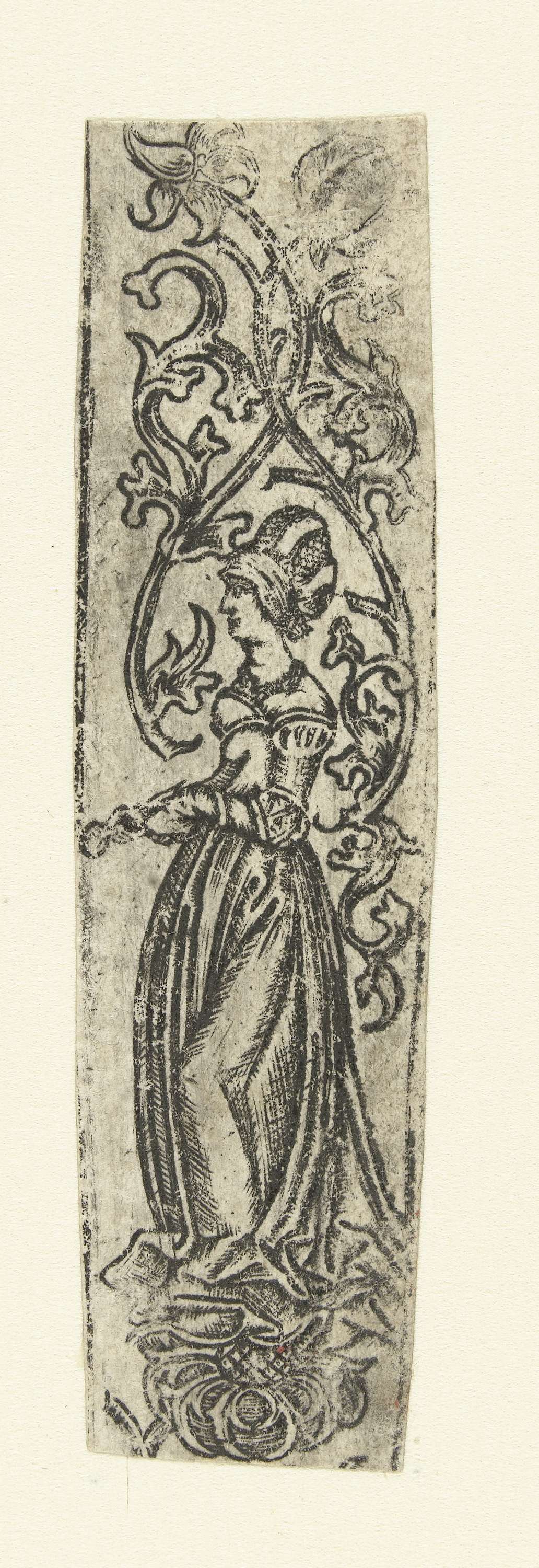 Schede met bovenaan een vrouw