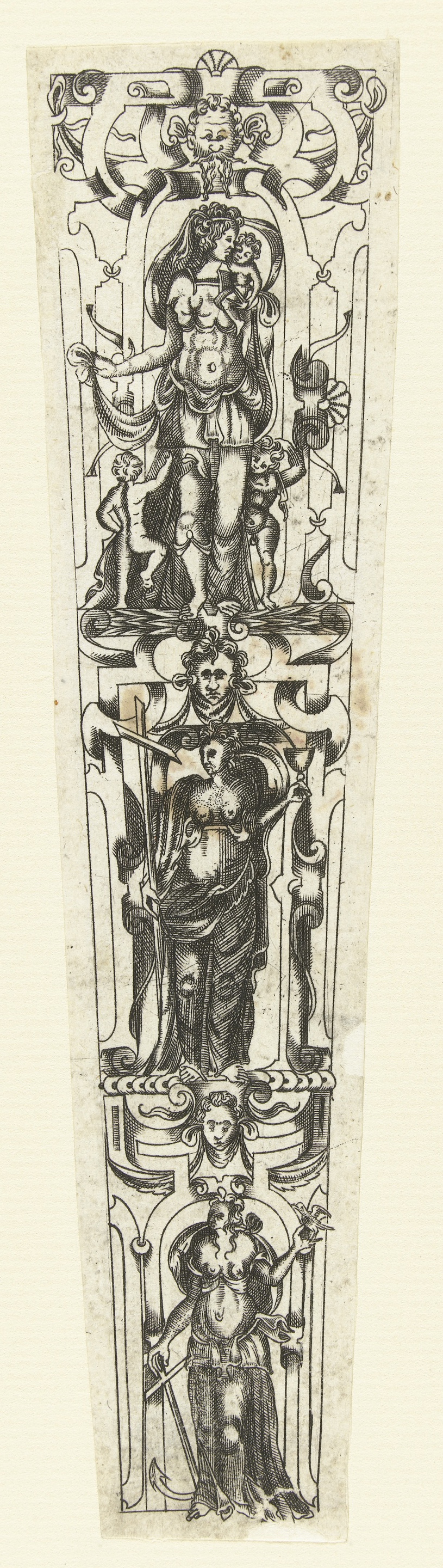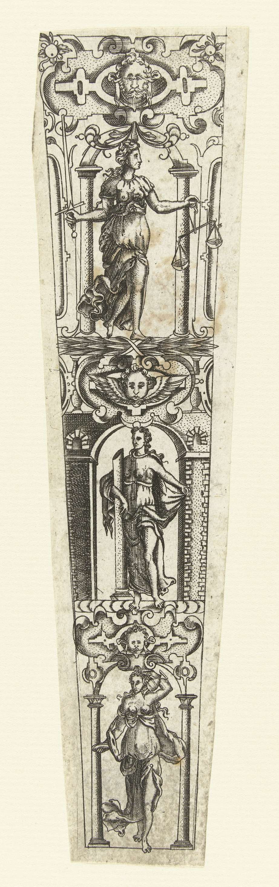 Schede met Temperantia, Fortitudo en Justitia