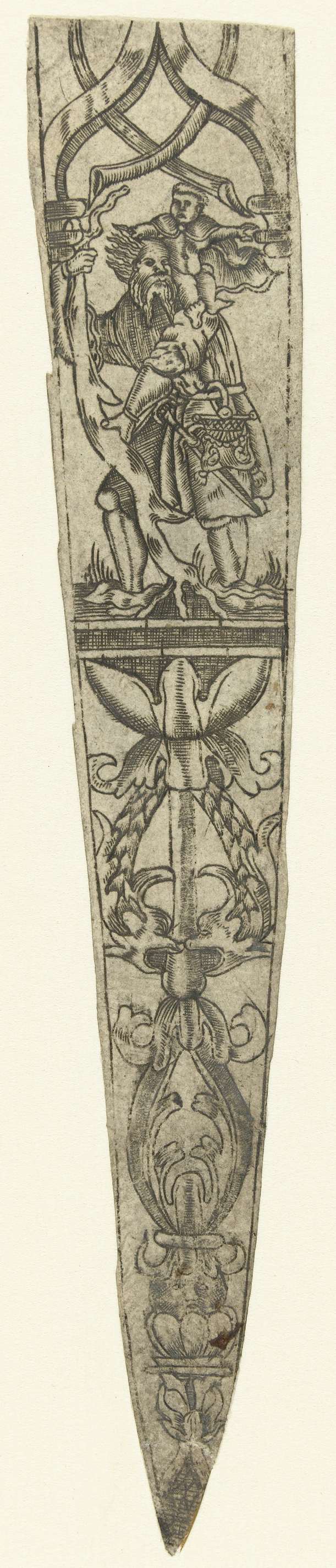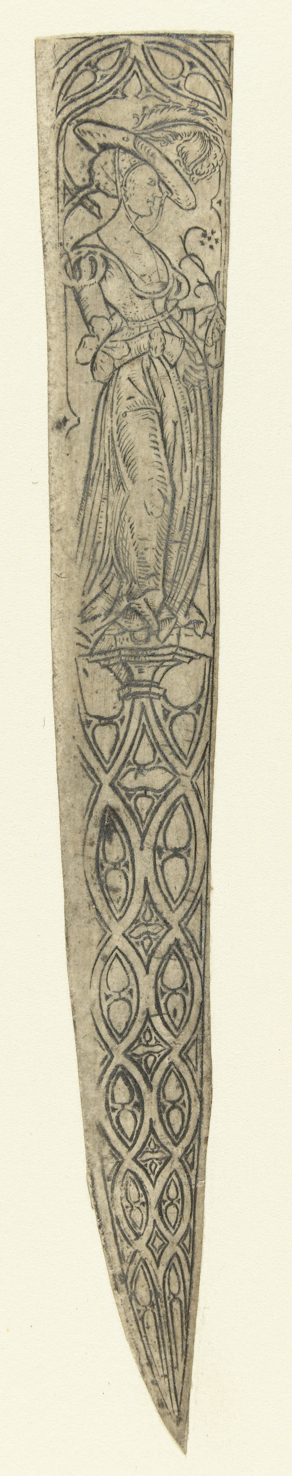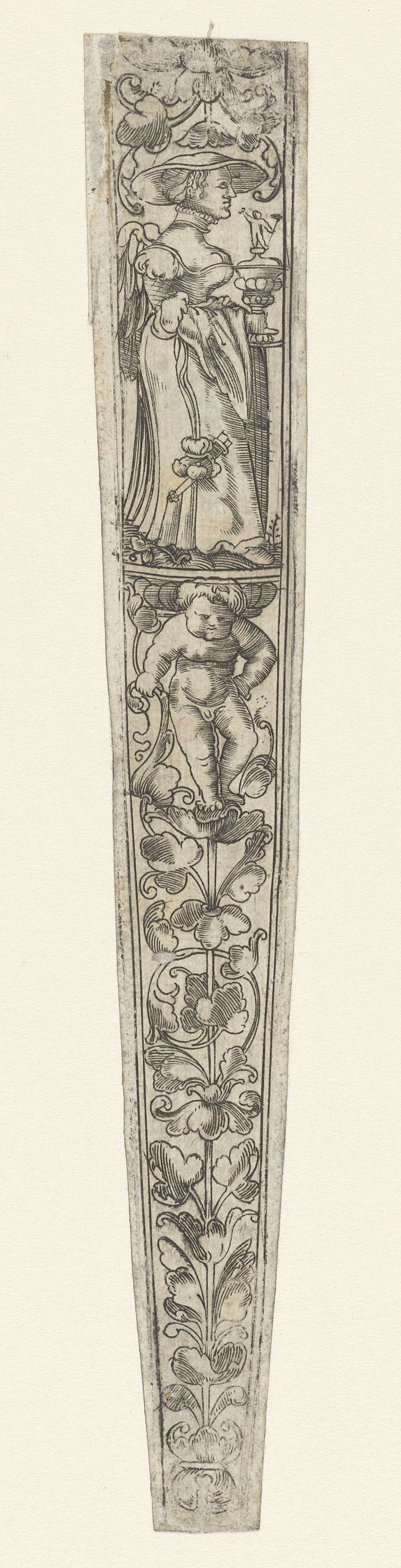 Messenheft, gedecoreerd met een vrouw met een tang i...