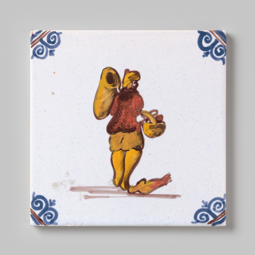 Tegel van keramiek met tinglazuur, voorstellende: ma...