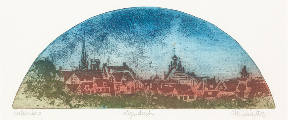 Ets in kleuren, voorsteld een stadsprofiel van Culem...