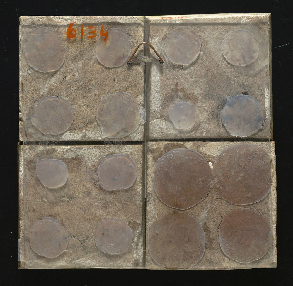 Tegelveld bestaande uit vier tegels van keramiek met...
