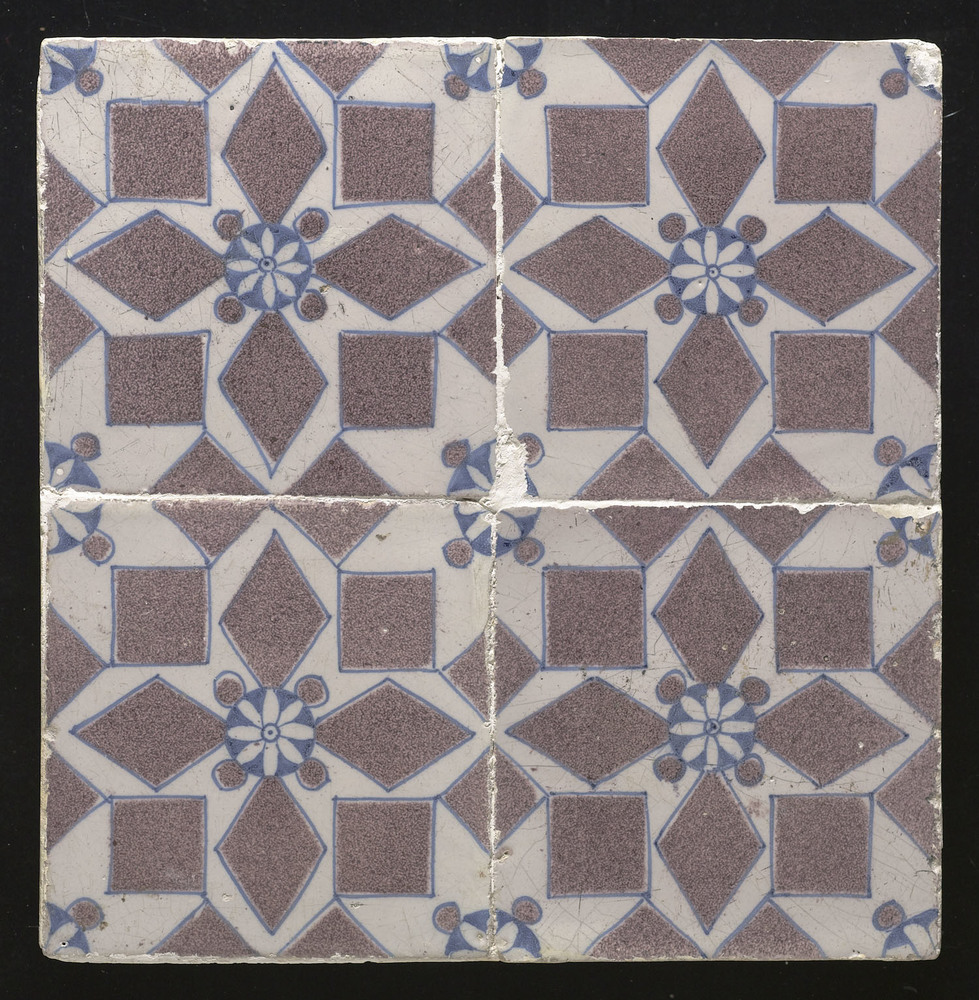 Tegel in tinglazuur, voorstellende iris of lelie, ve...