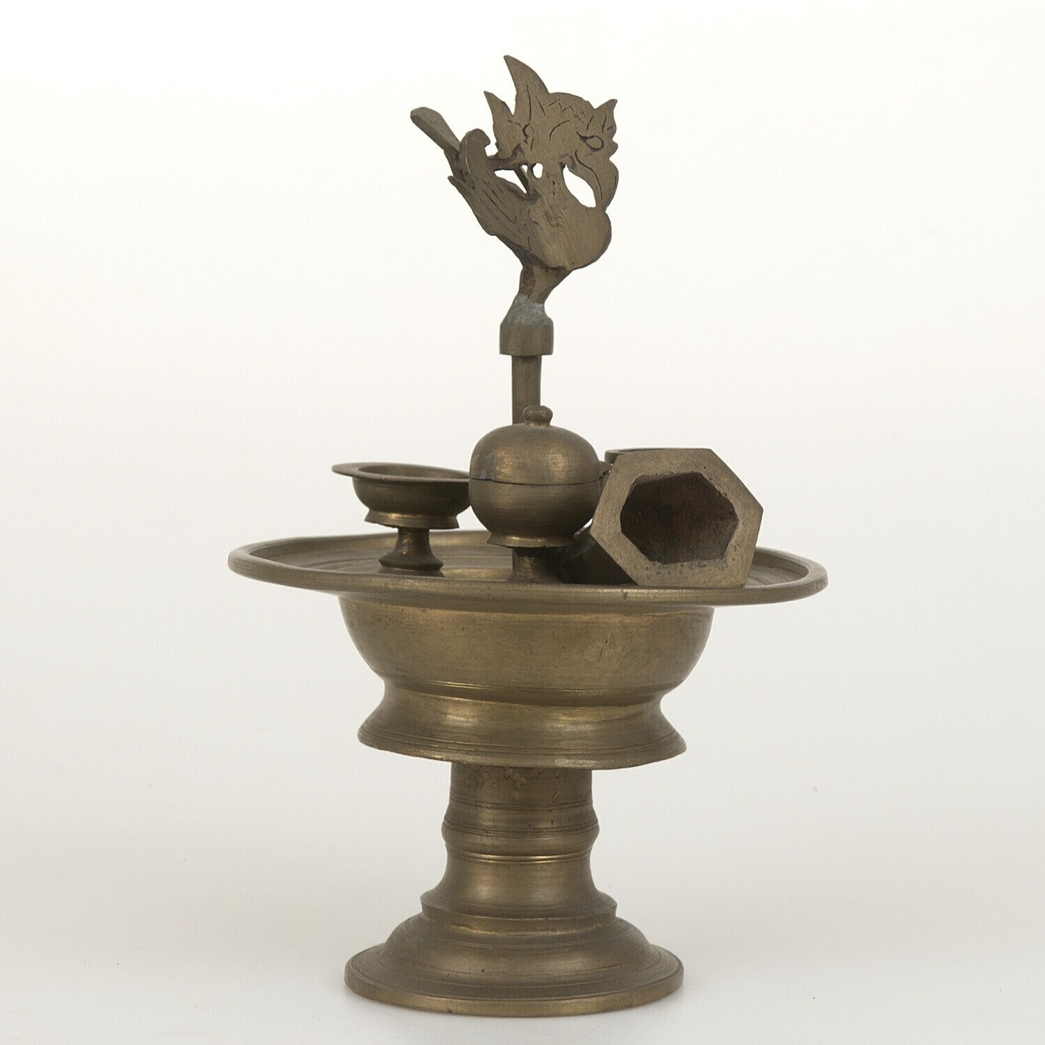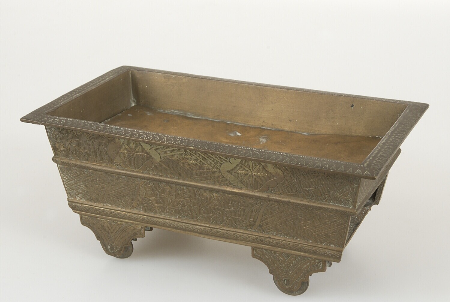 Messing kwispedoor versierd met wajangfiguren, swast...