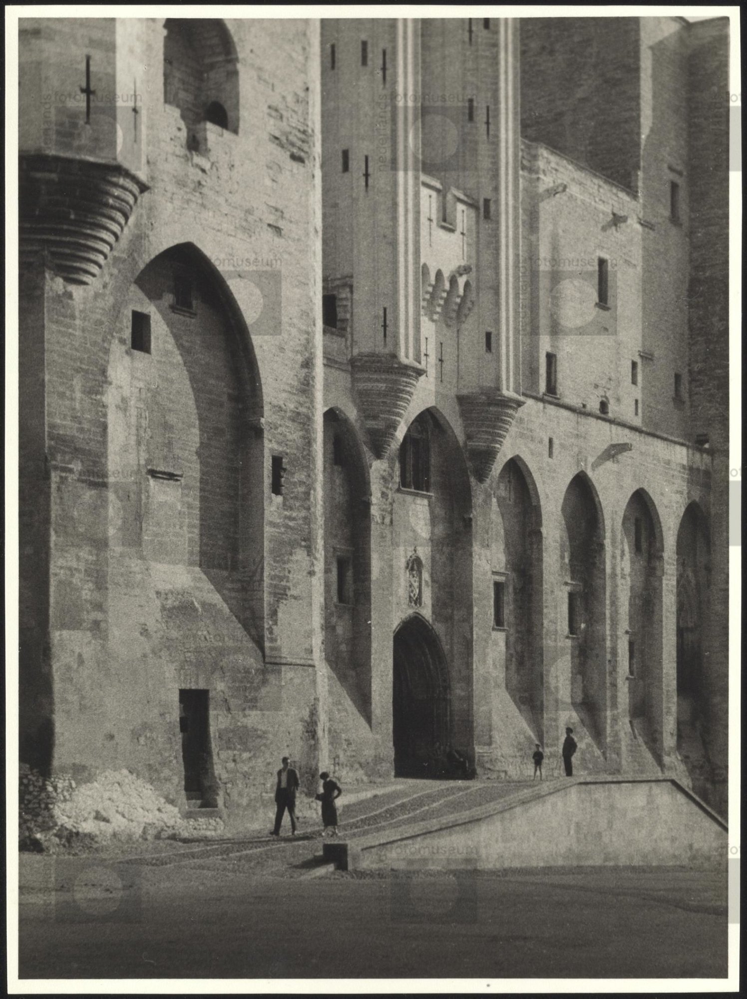 ingang van het Palais du pape met figuren