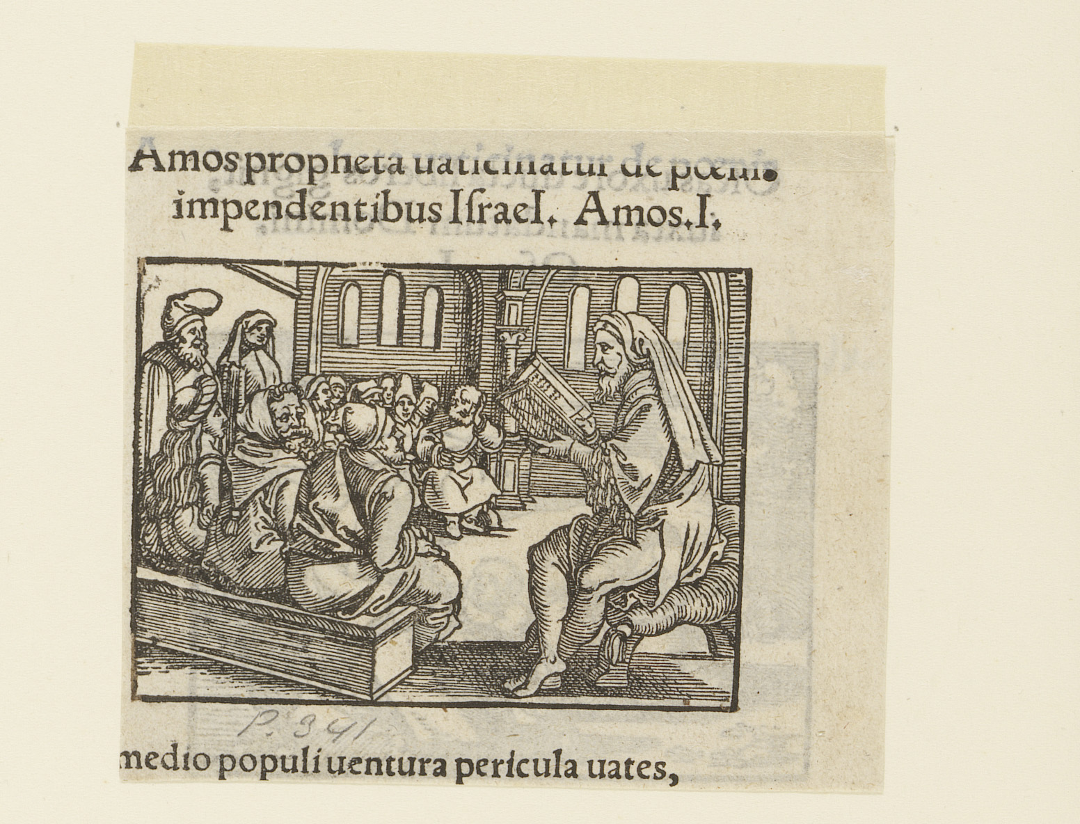Profeet Amos leest voor in de tempel