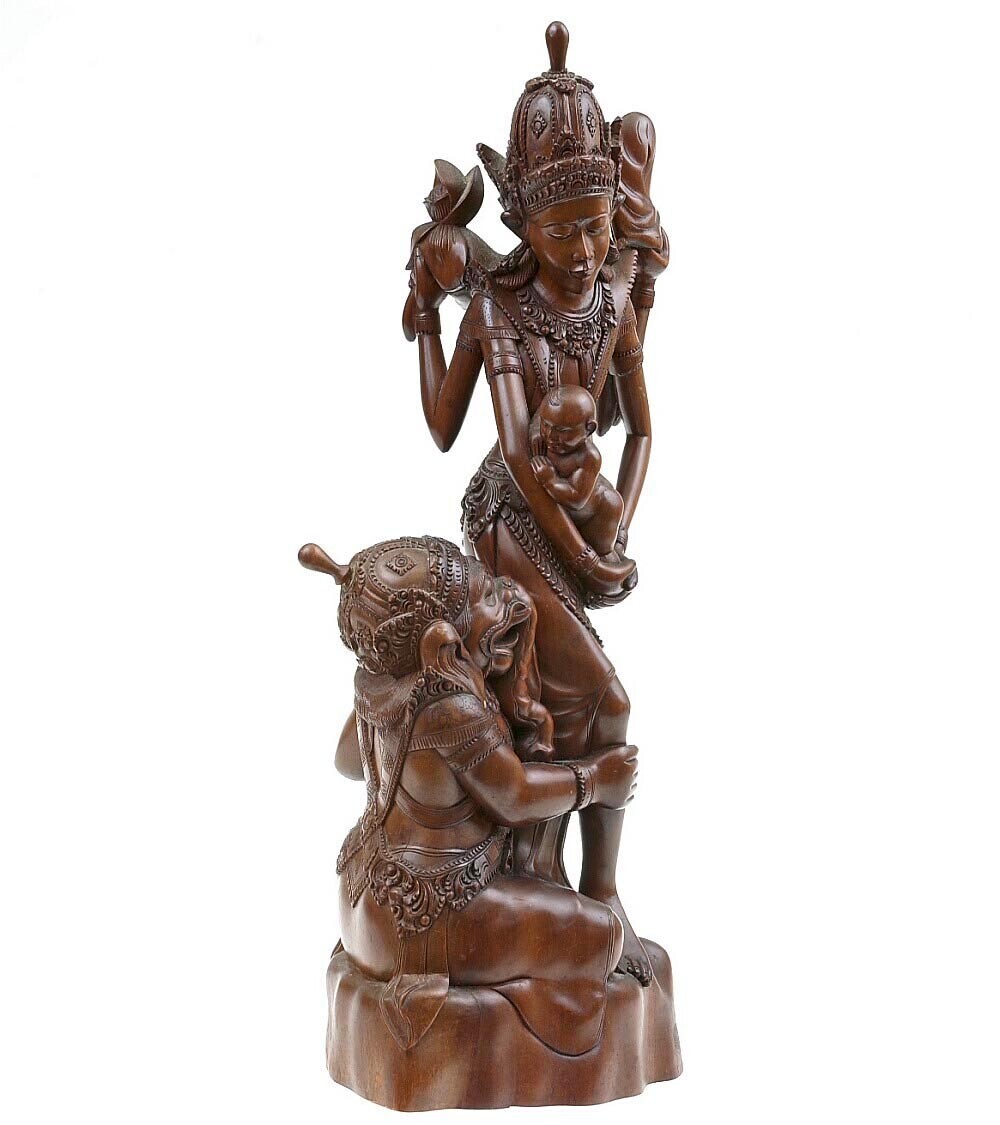 Houten beeld voorstellende een godheid met een baby ...