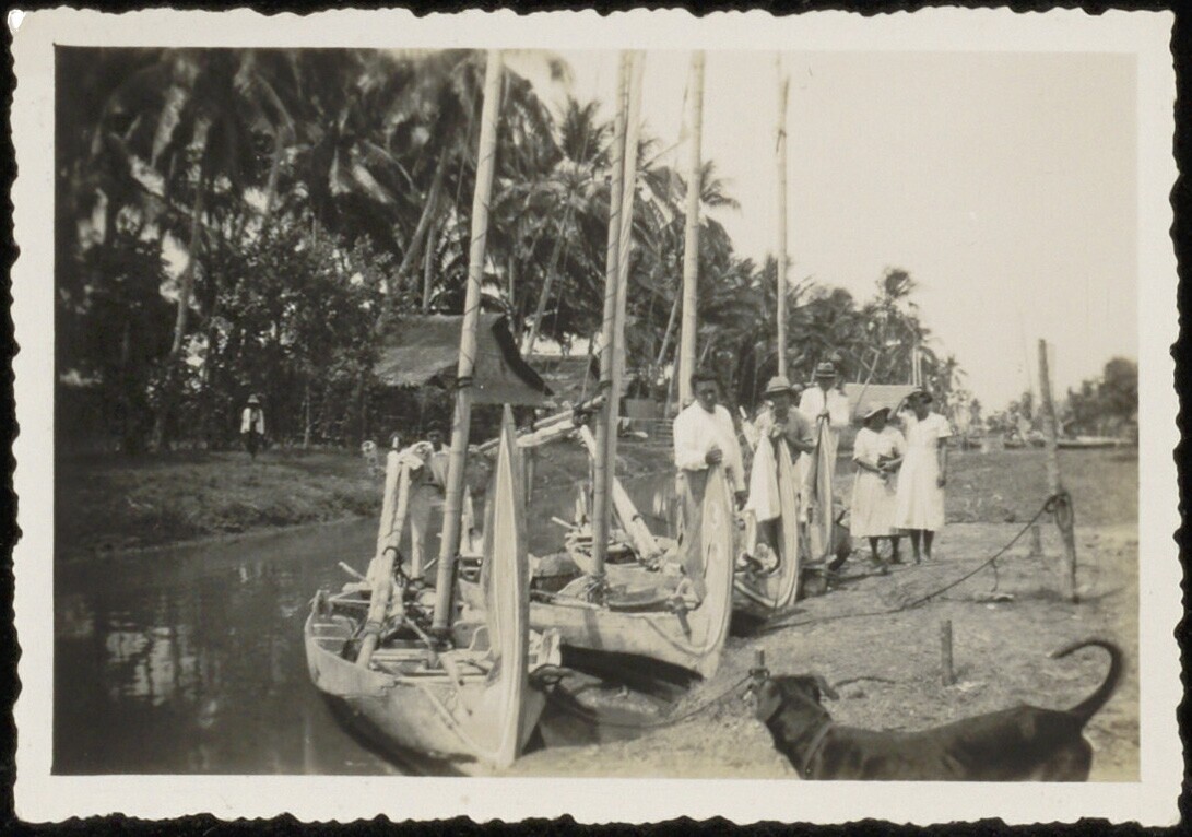 Prauwen bij de ruïne van Fort Speelwijk, Bantam