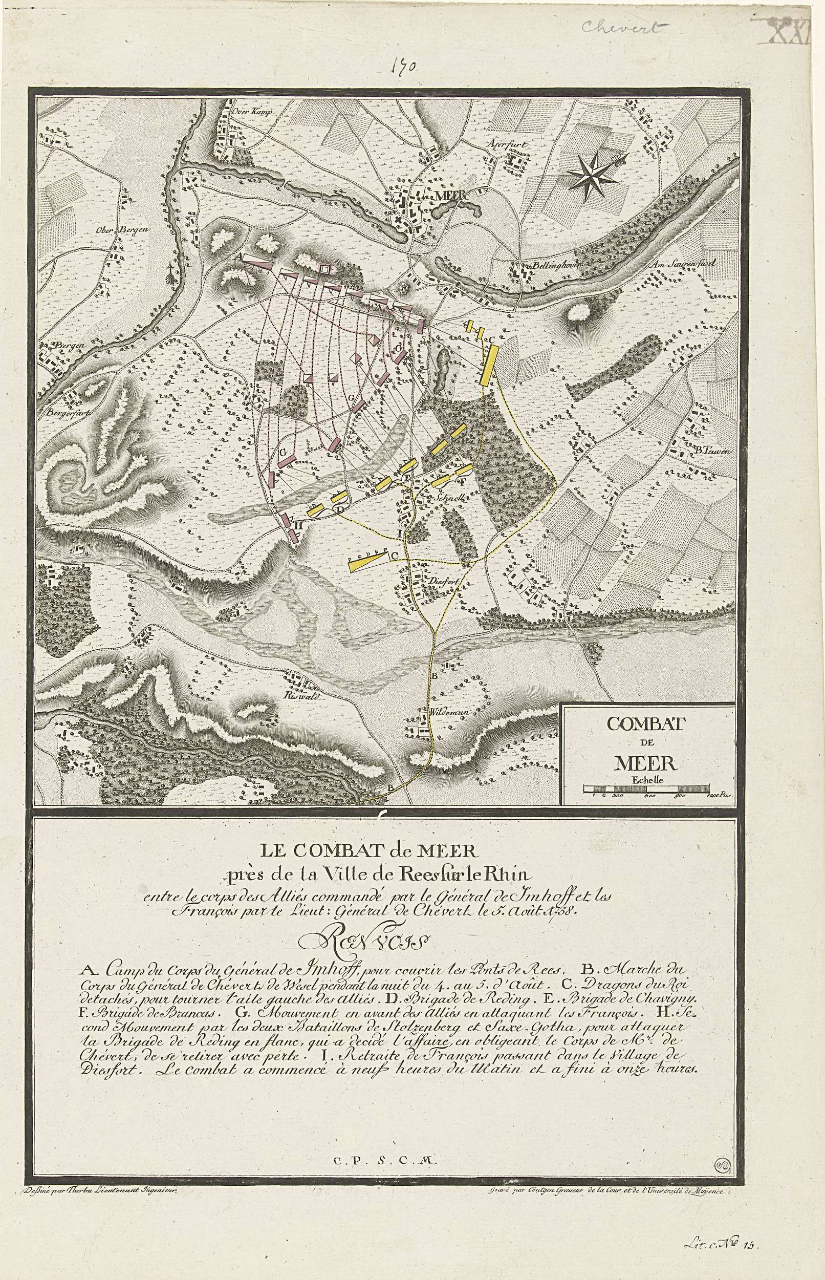 Kaart van de slag bij Meer, 1758