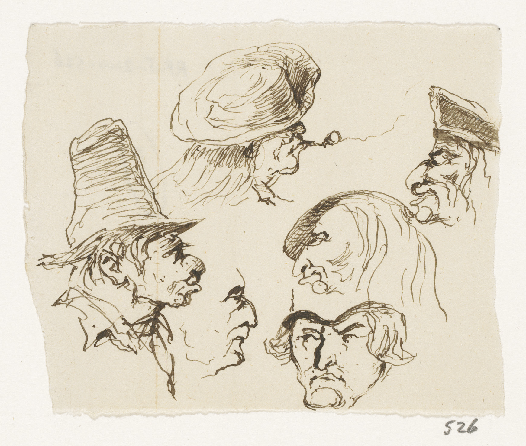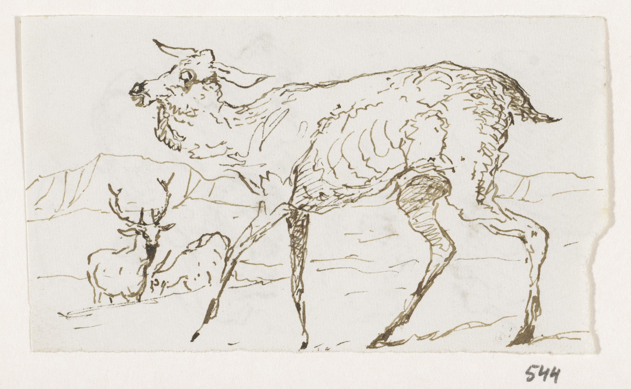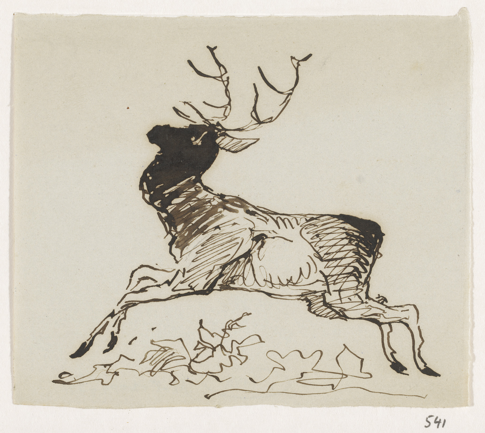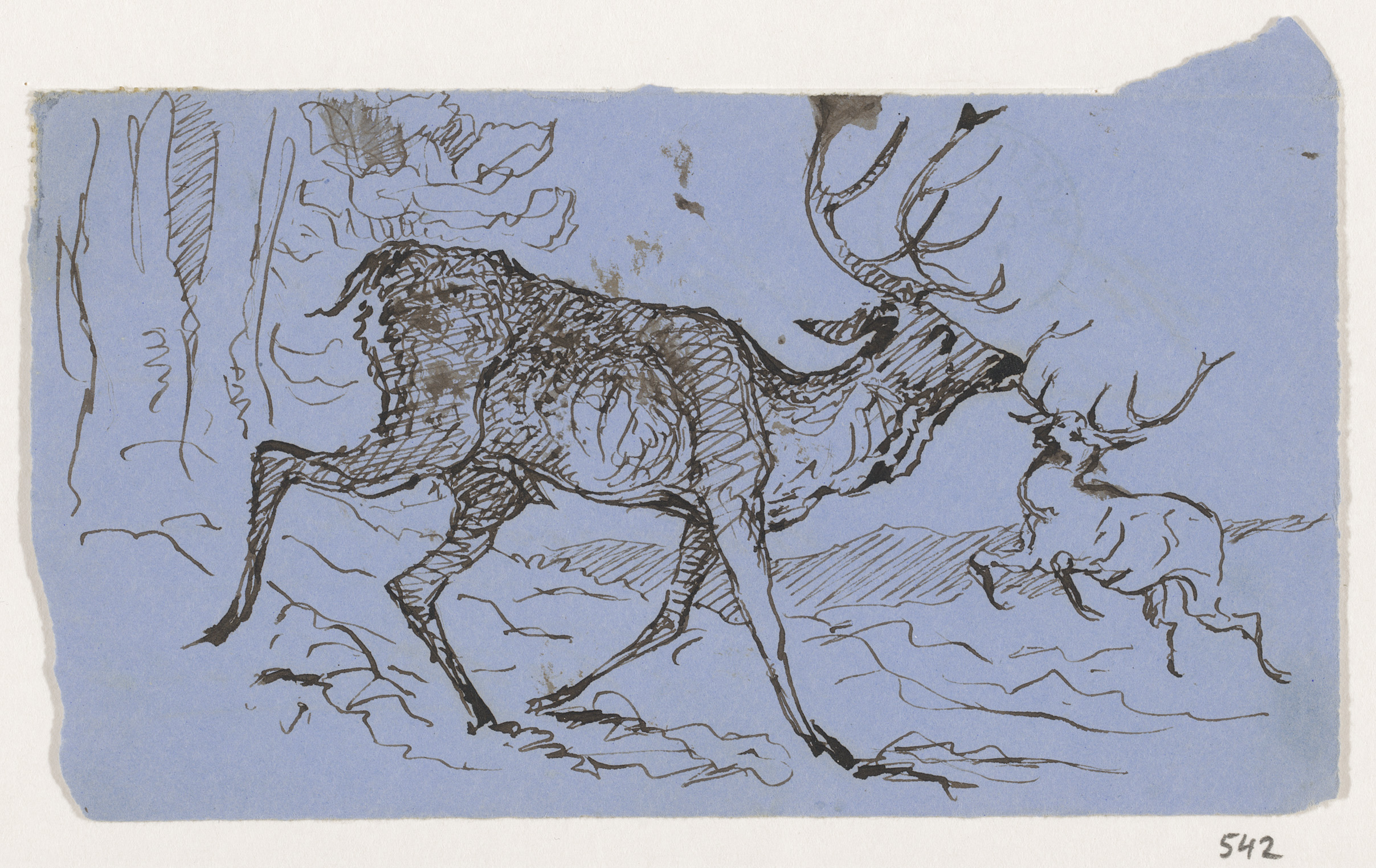 Schetsblad met koppen en herten