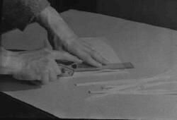 papierstrokensnijder in gebruik m handen