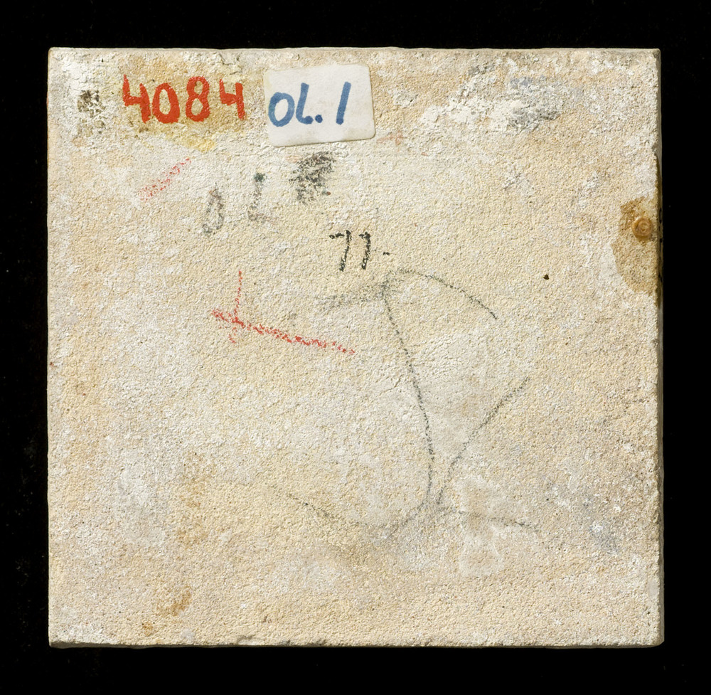 Tegel van keramiek, tinglazuur, waarschijnlijk gemaa...