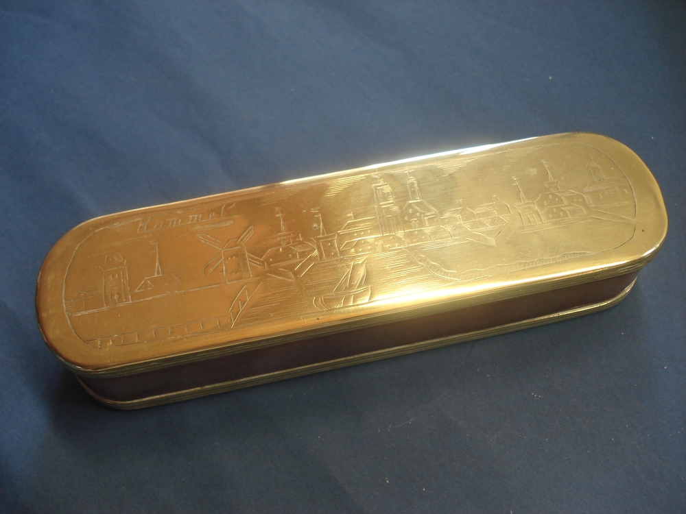 tabaksdoos van koper en messing 1800-1825
