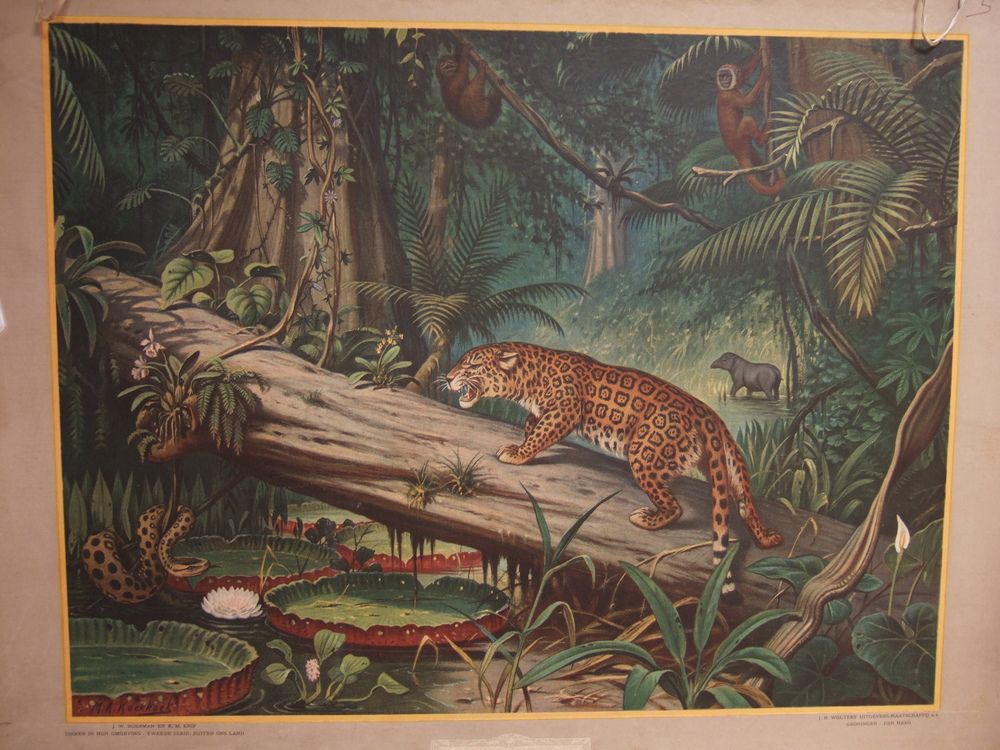 Schoolplaat op karton, "In het Braziliaansche oerwou...