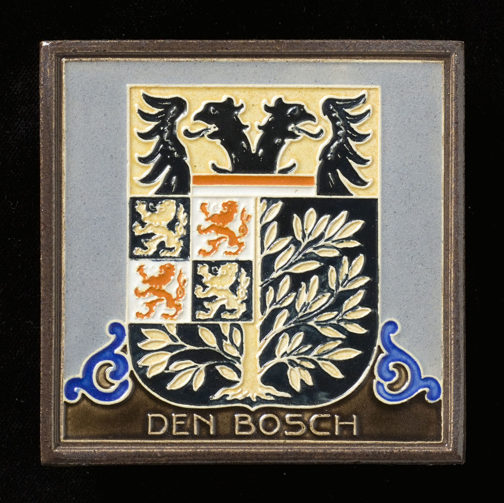 Tegel in cloisonné-techniek, voorstellende wapen Den...