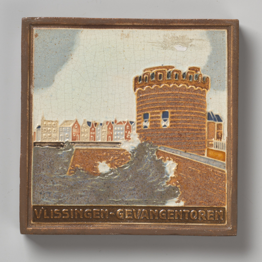 Tegel in cloisonné-techniek, met voorstelling: Vliss...