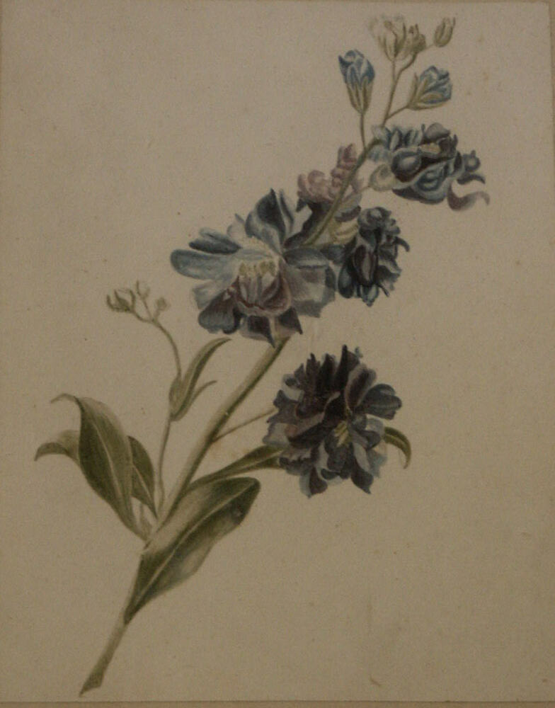 Aquarel voorstellende een akelei, gemaakt op de teke...