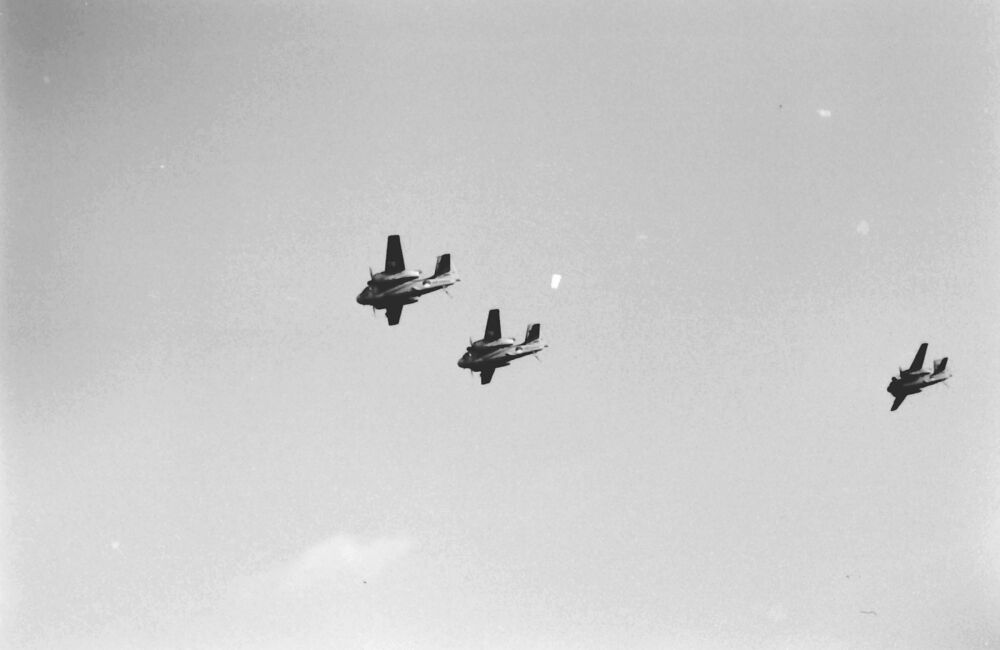 Drie Grumman S-2A 'Tracker' MLD in de vlucht.