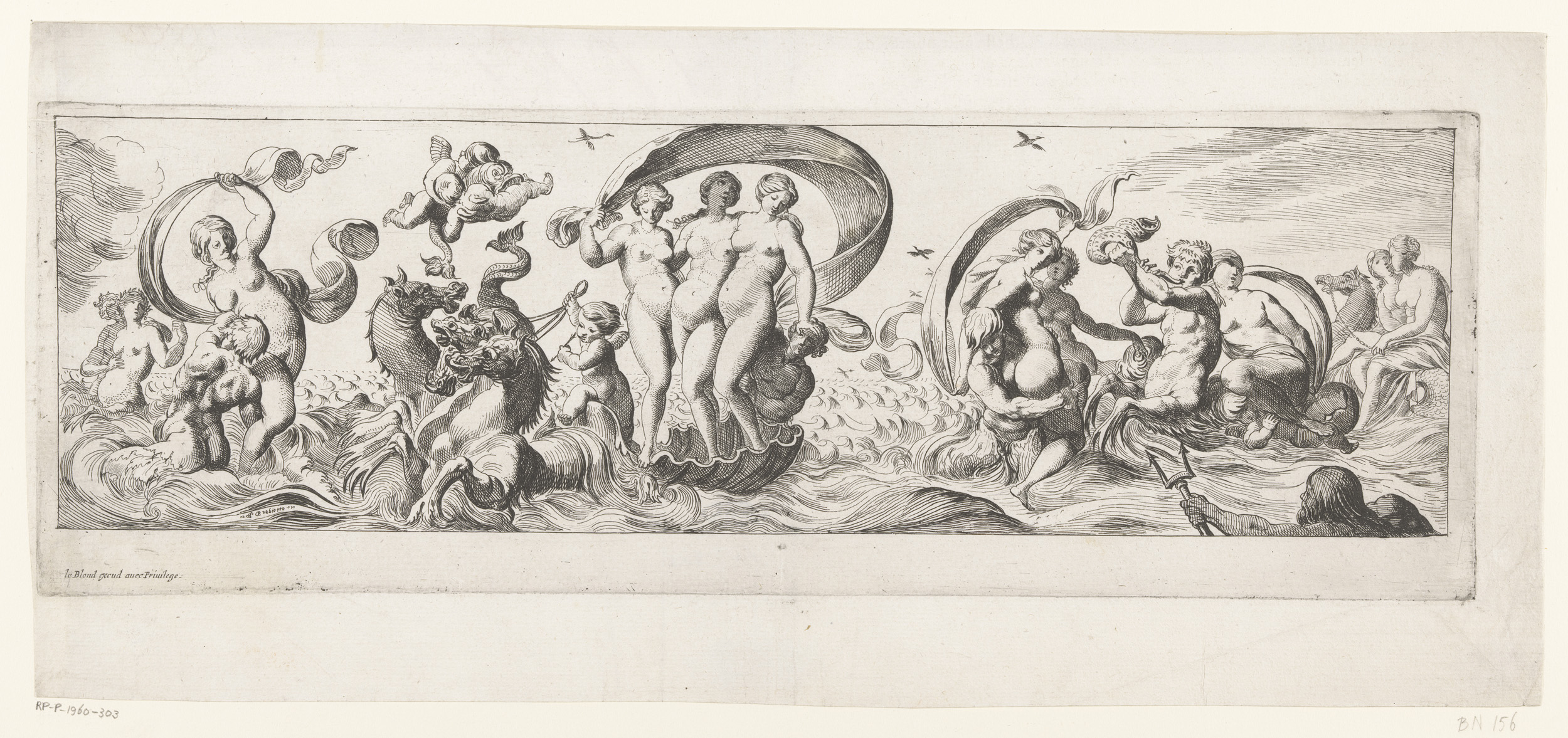 Zeegodinnen met in het midden Galathea, voortgetrokk...