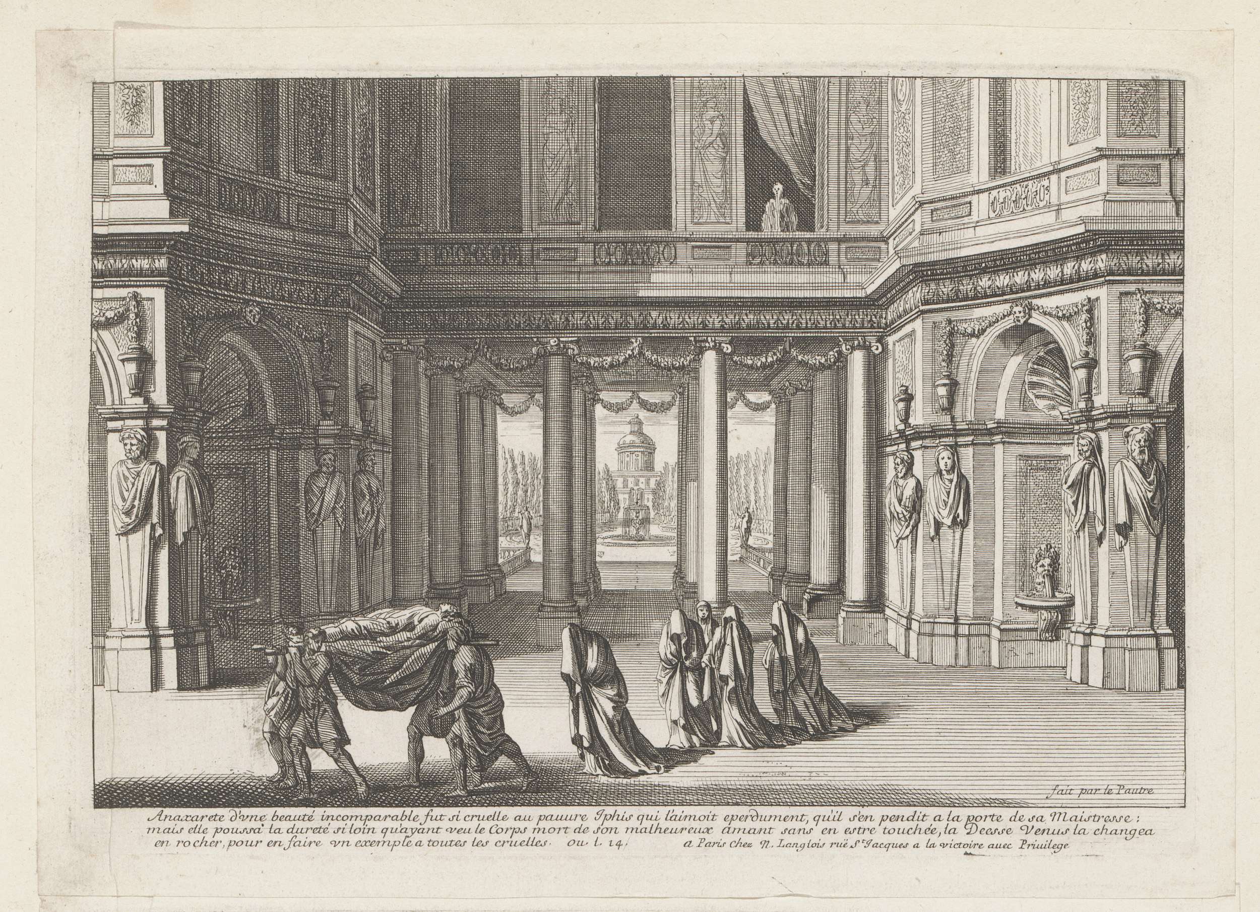 Het lichaam van Iphis wordt weggedragen