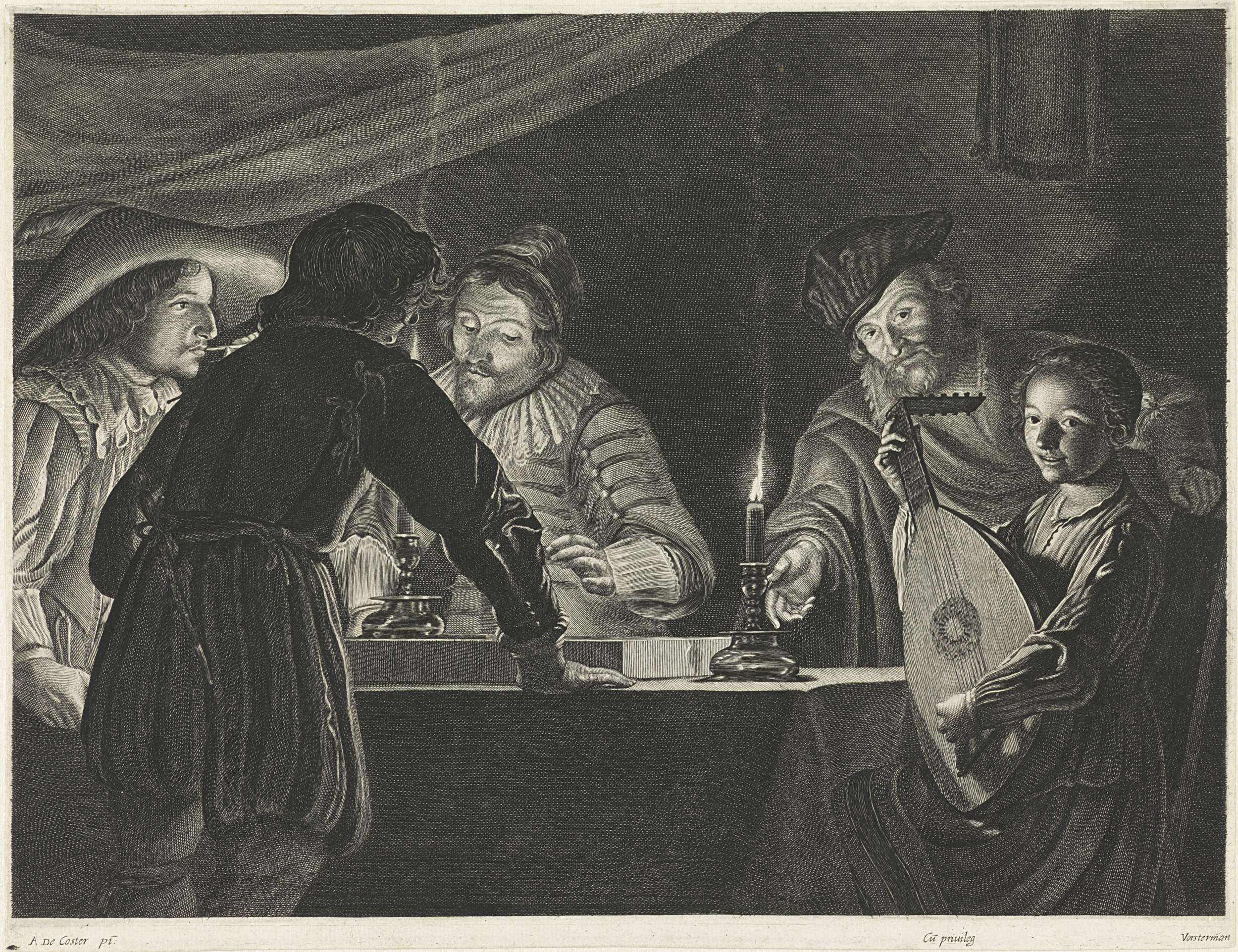 Triktrakspelers bij kaarslicht