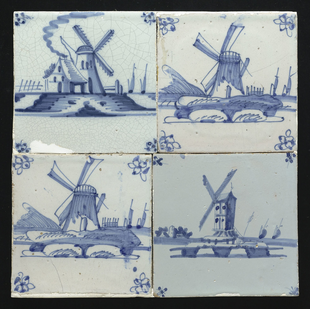 Tegelveld in tinglazuur, voorstellende molen in land...