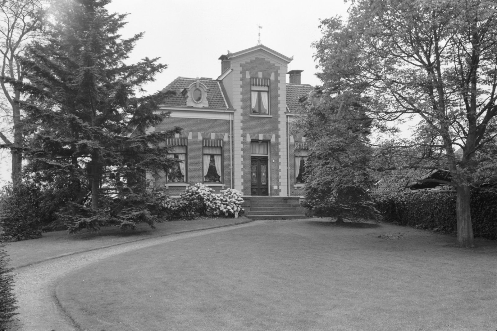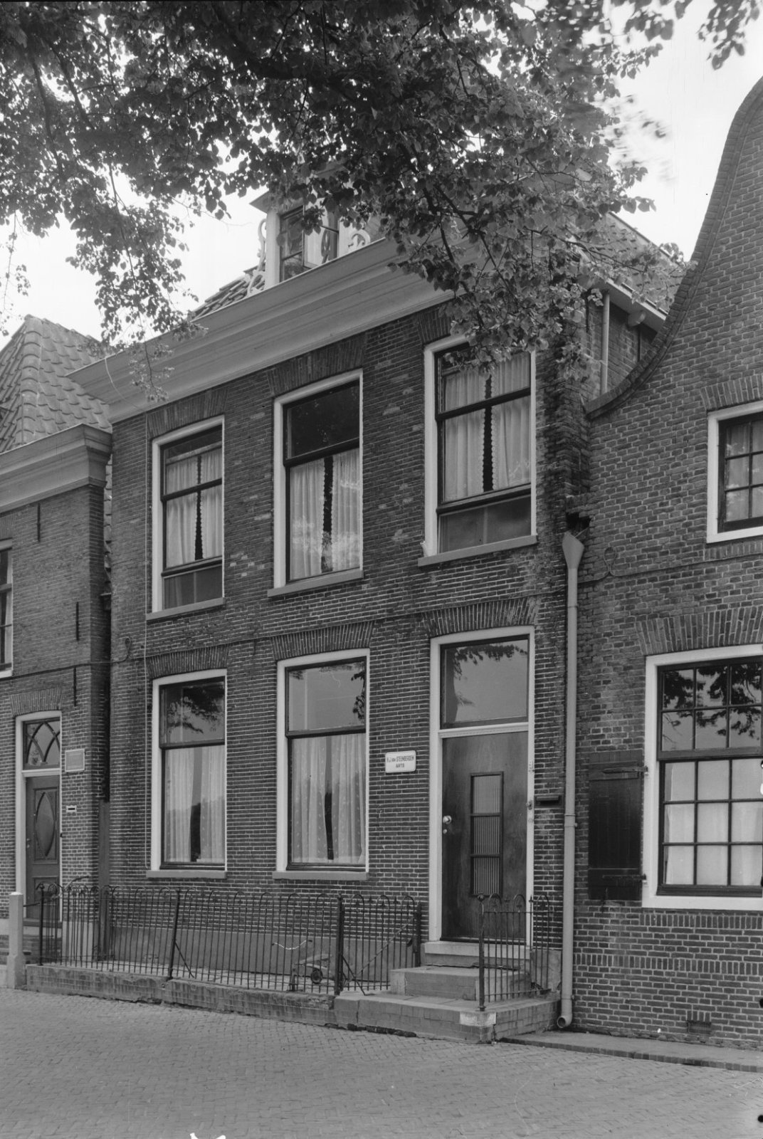 Voorgevel met hek ervoor en voordeur met stoep