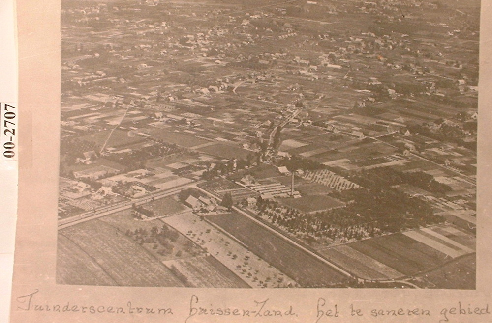 Een luchtfoto van het tuinderscentrum Huissen zand h...