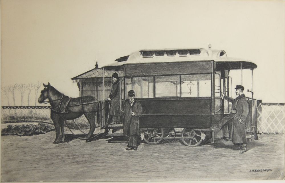 paardentram van Zaltbommel. Zwart krijt, J.H. Kaasja...