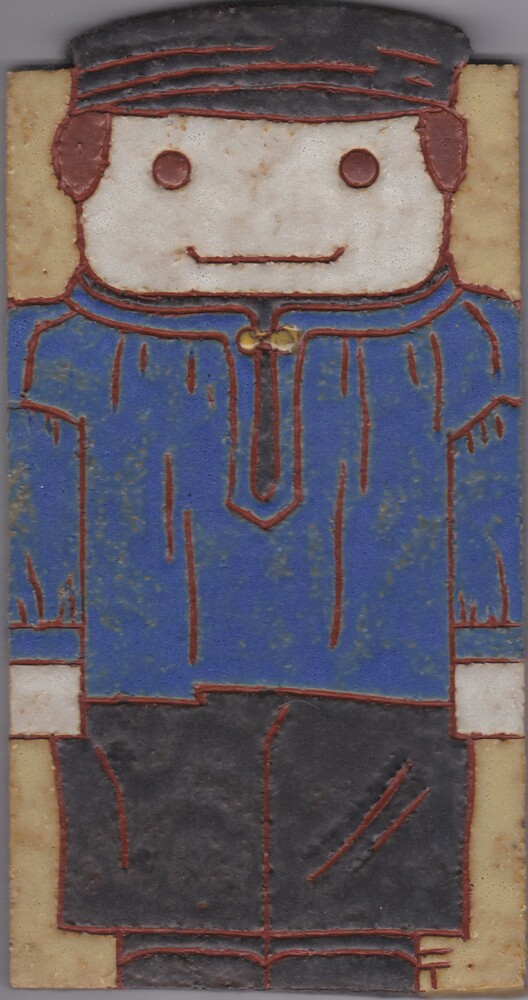Tegel met ingekerfde lijnen, met voorstelling: stree...