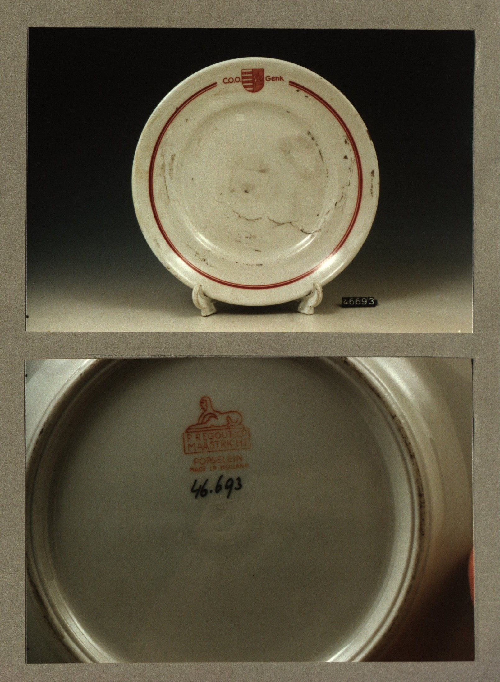 Plat bord, model P met decor C.O.O. Genk