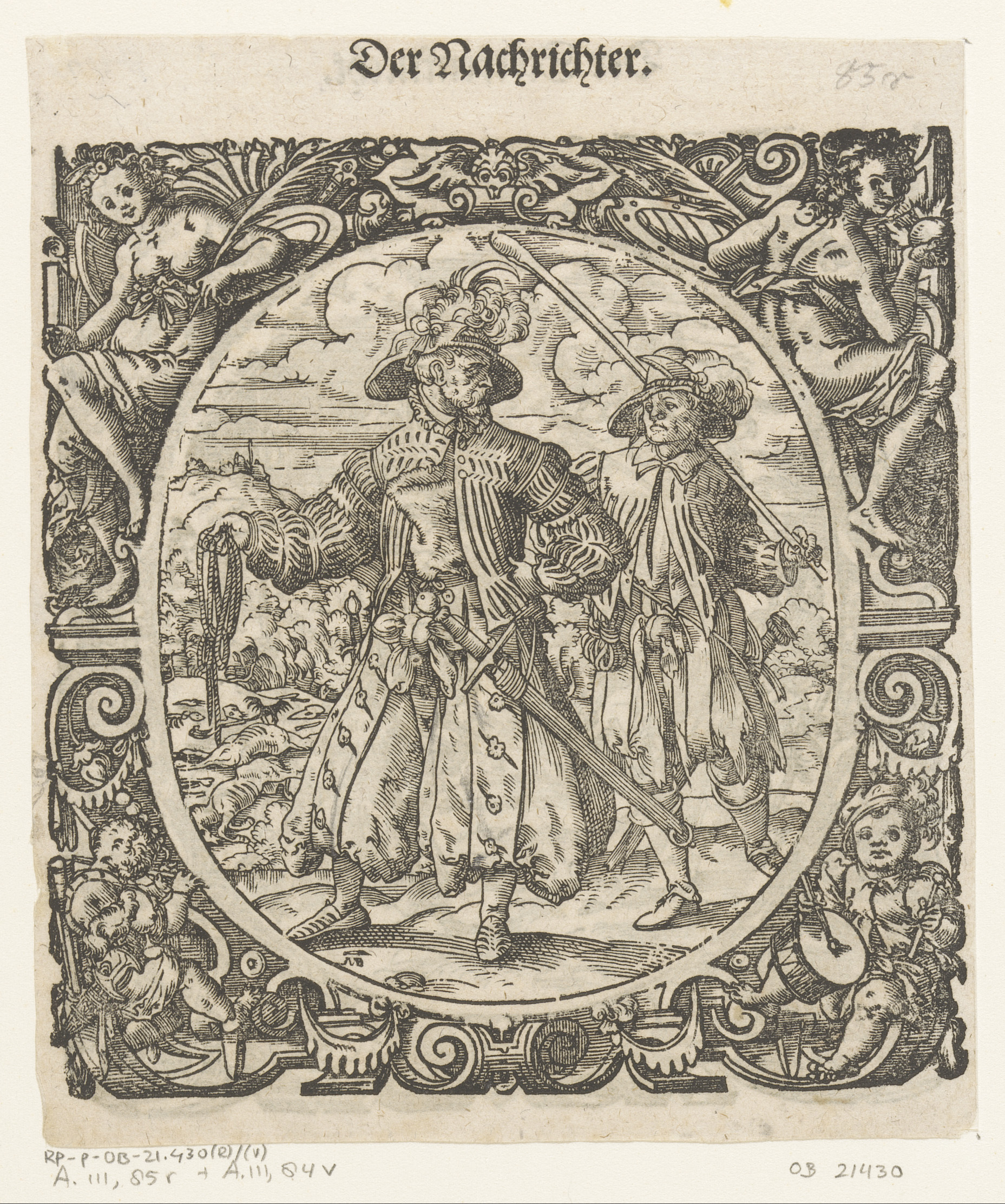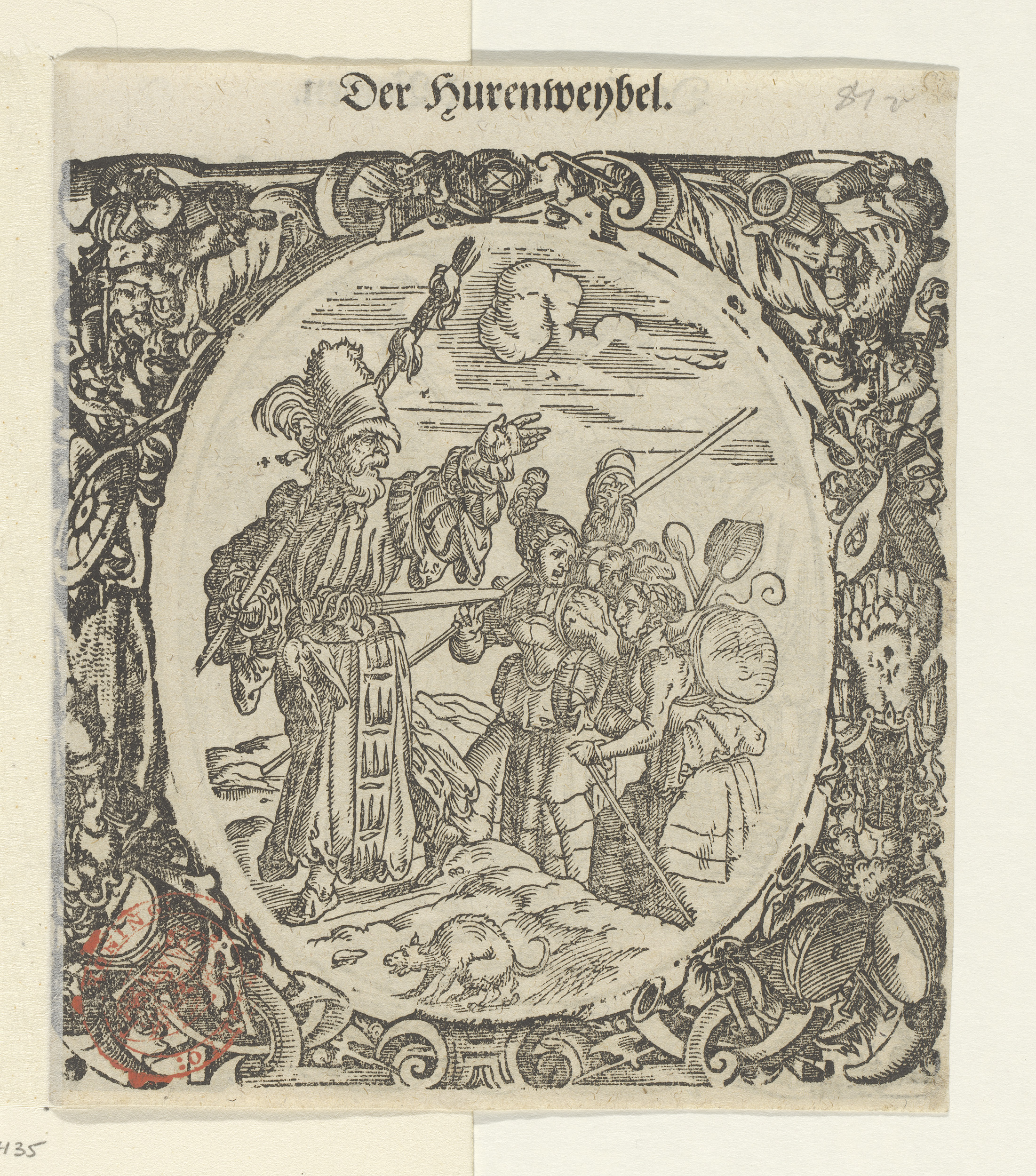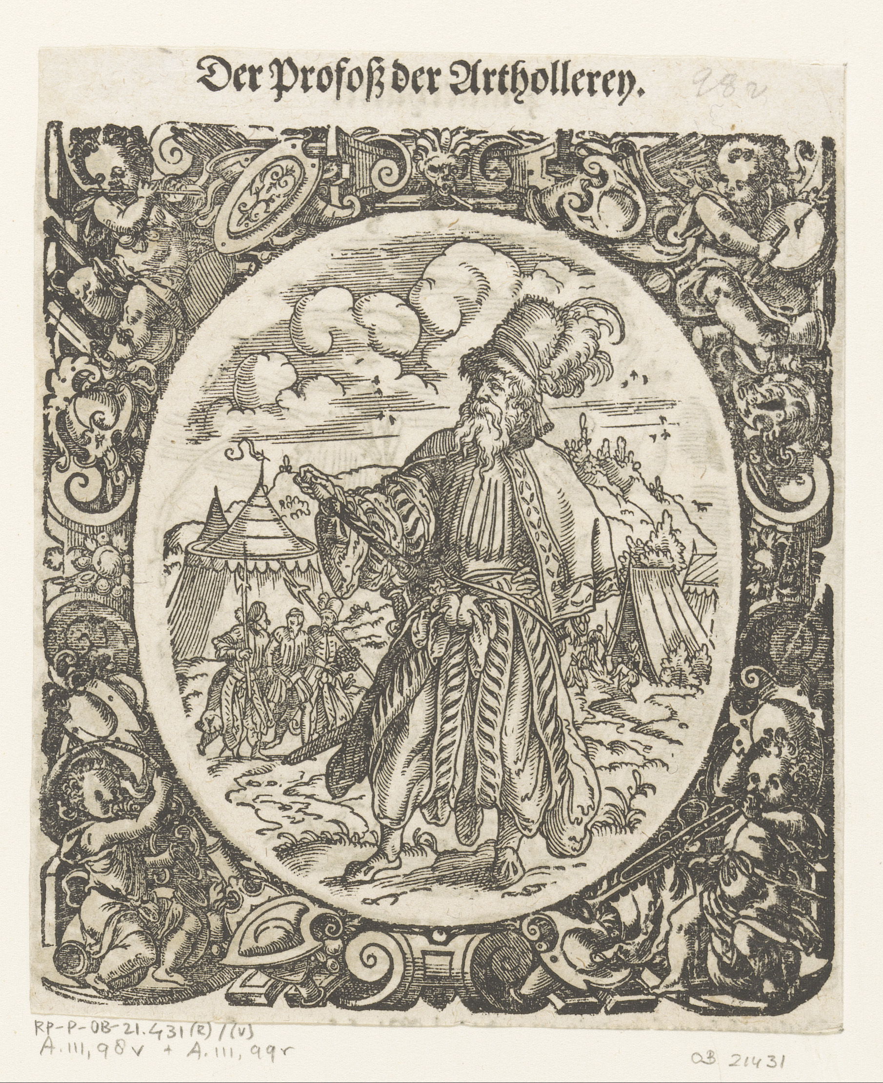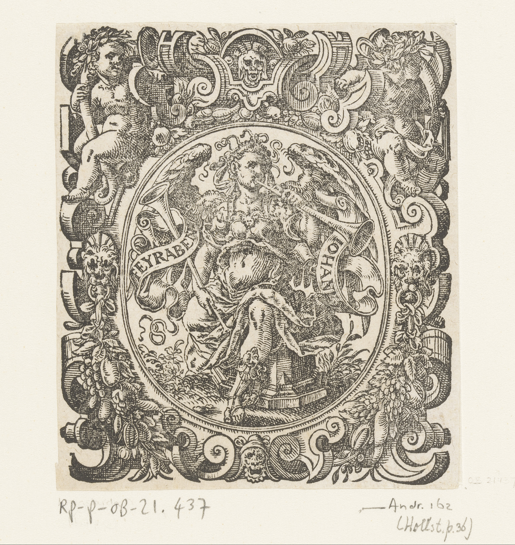 Drukkersmerk van Johann Feyerabend met een trompette...