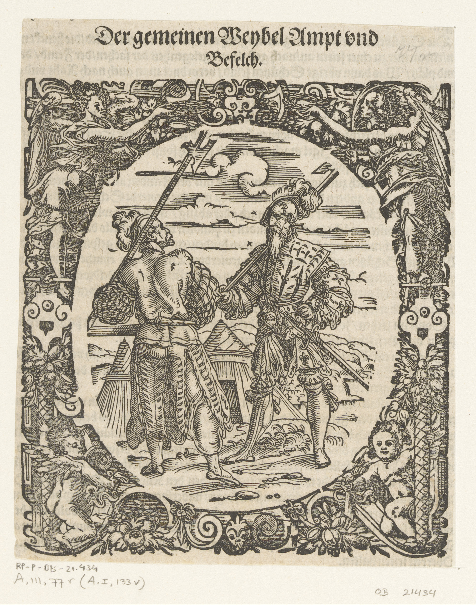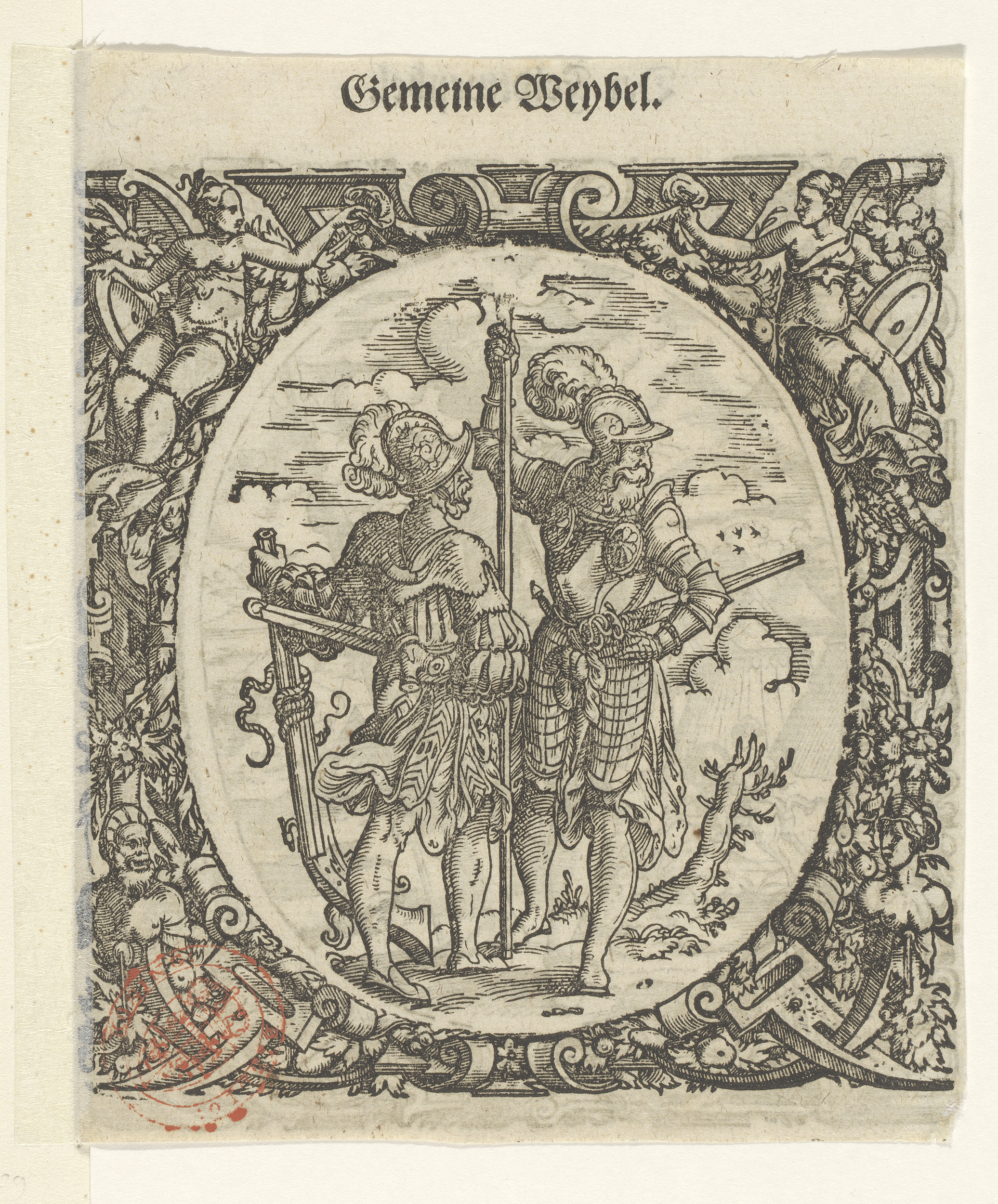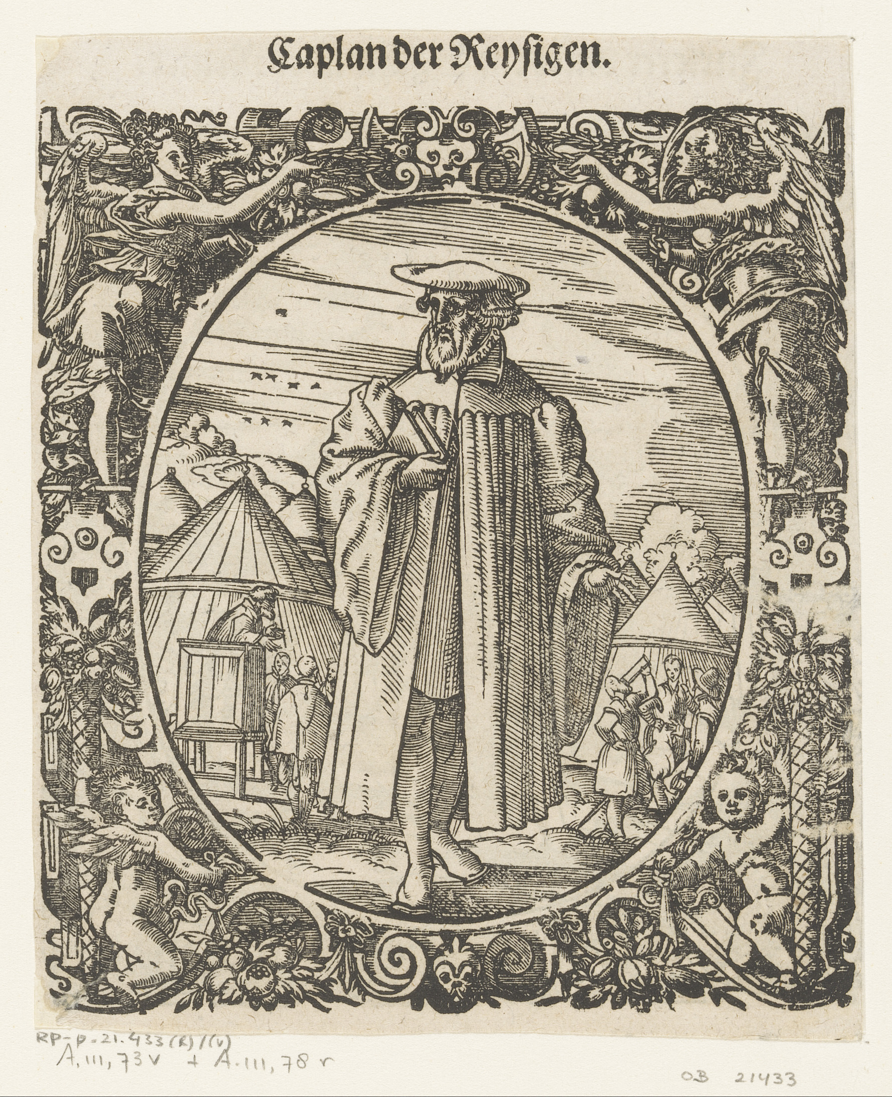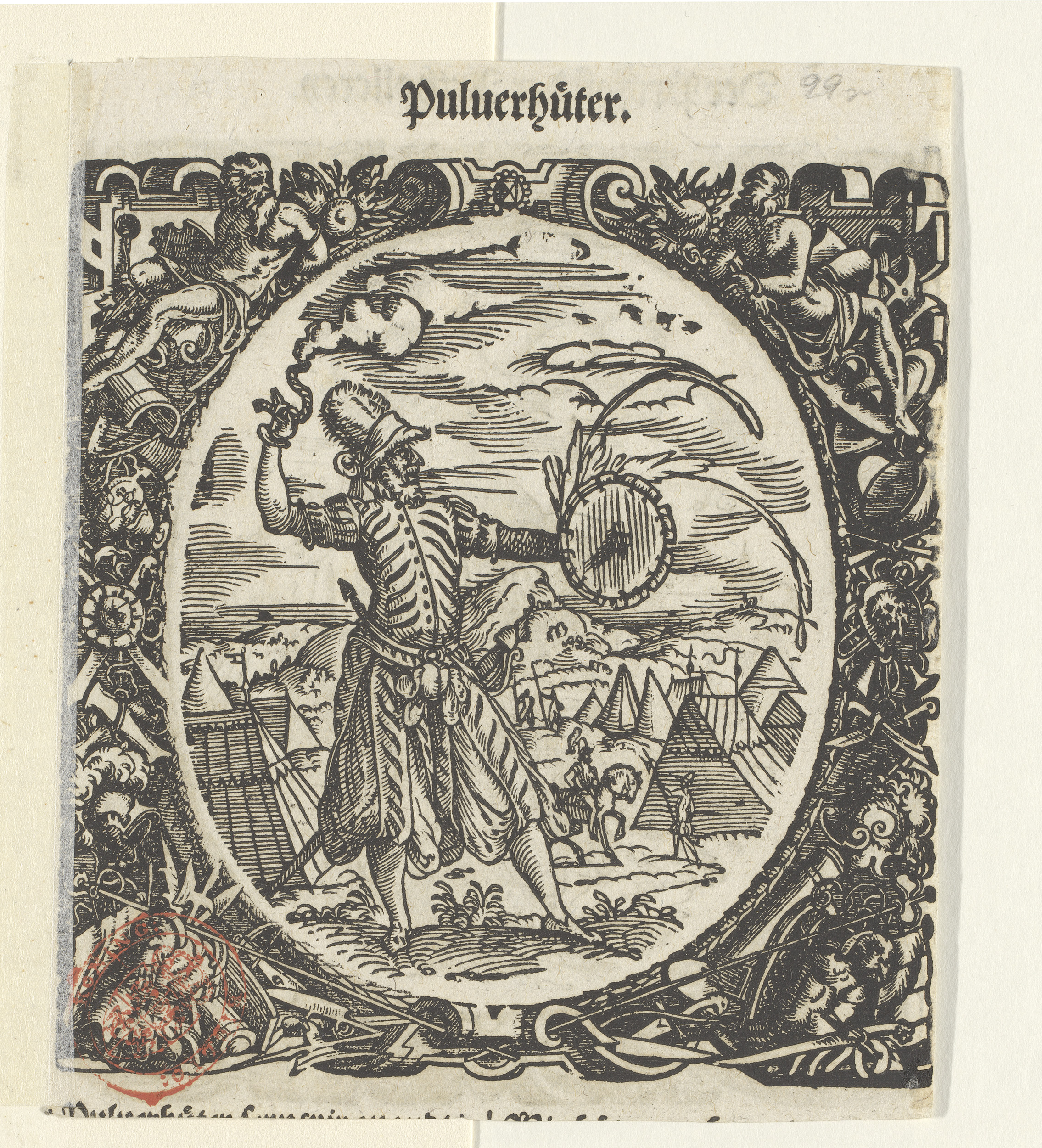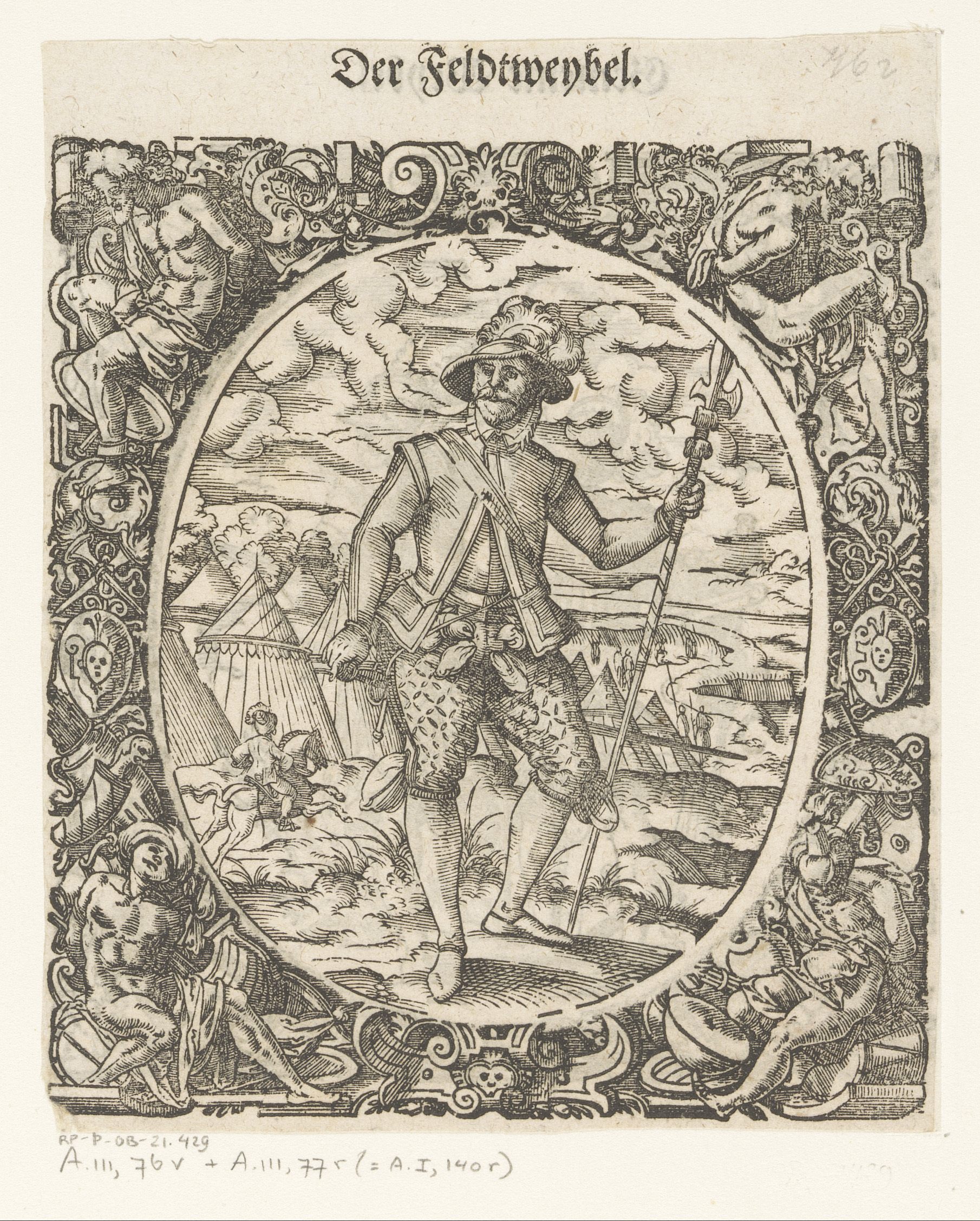 Drukkersmerk van Johann Feyerabend met een trompette...