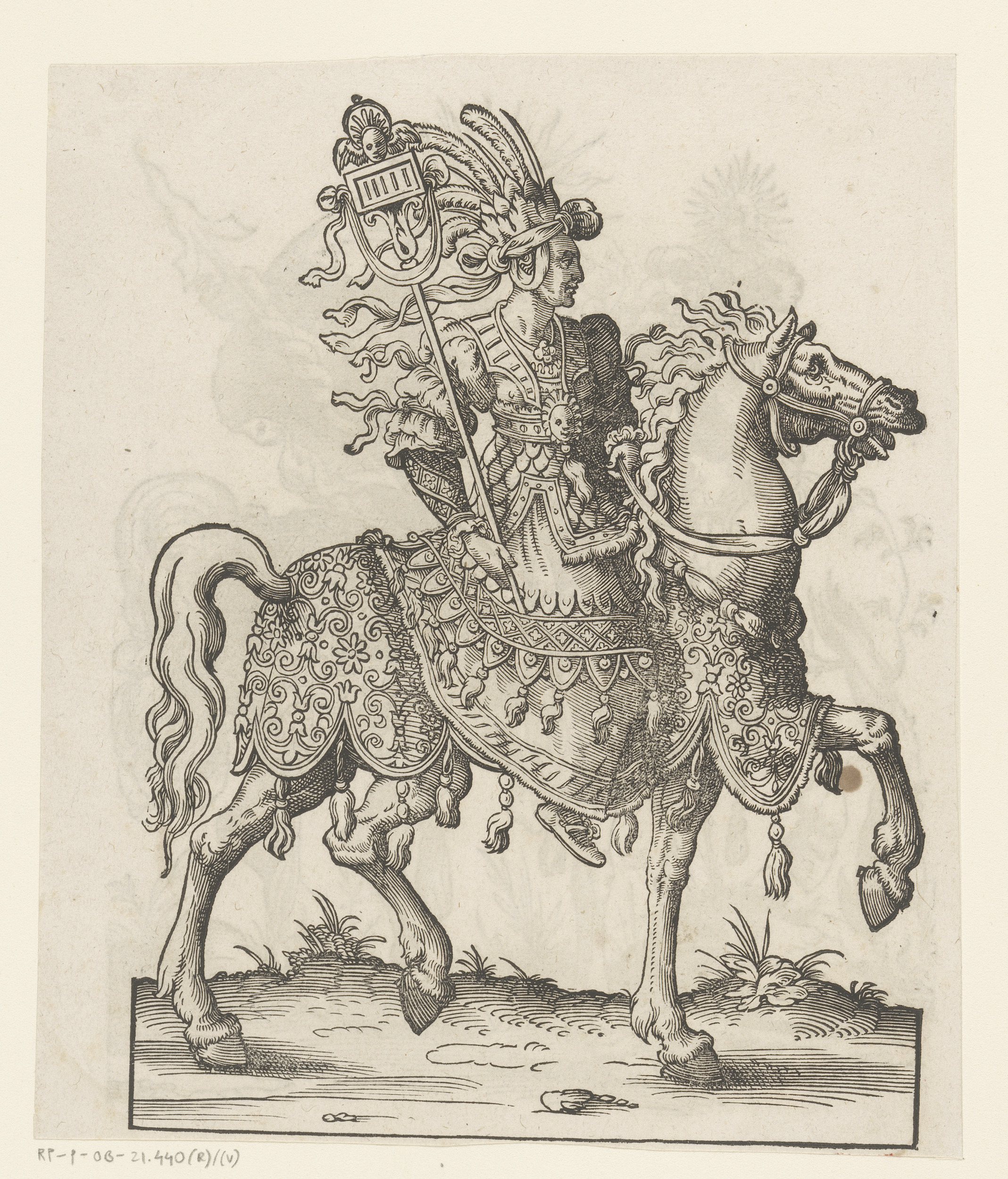 Keizer Karel V te paard met zijn heraut en enkele so...