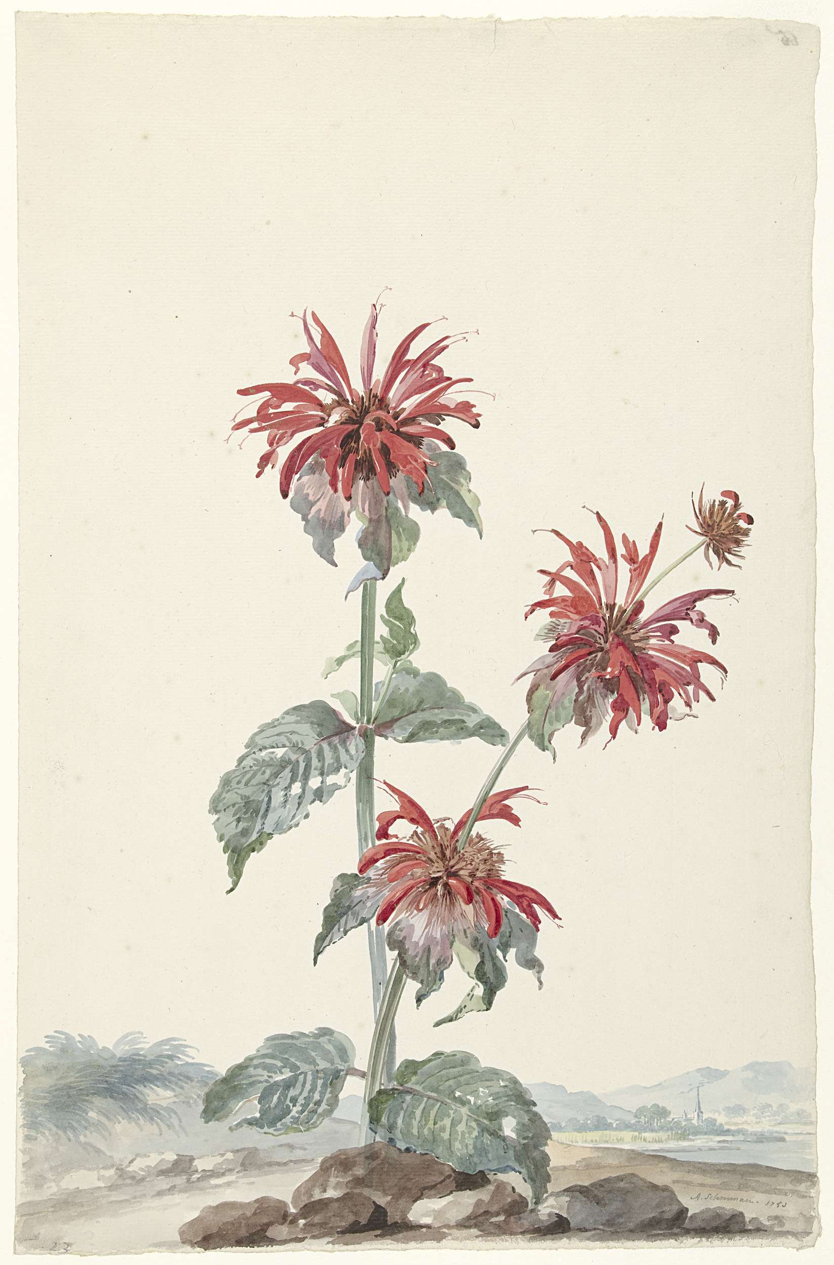 Rode bergamot in een landschap