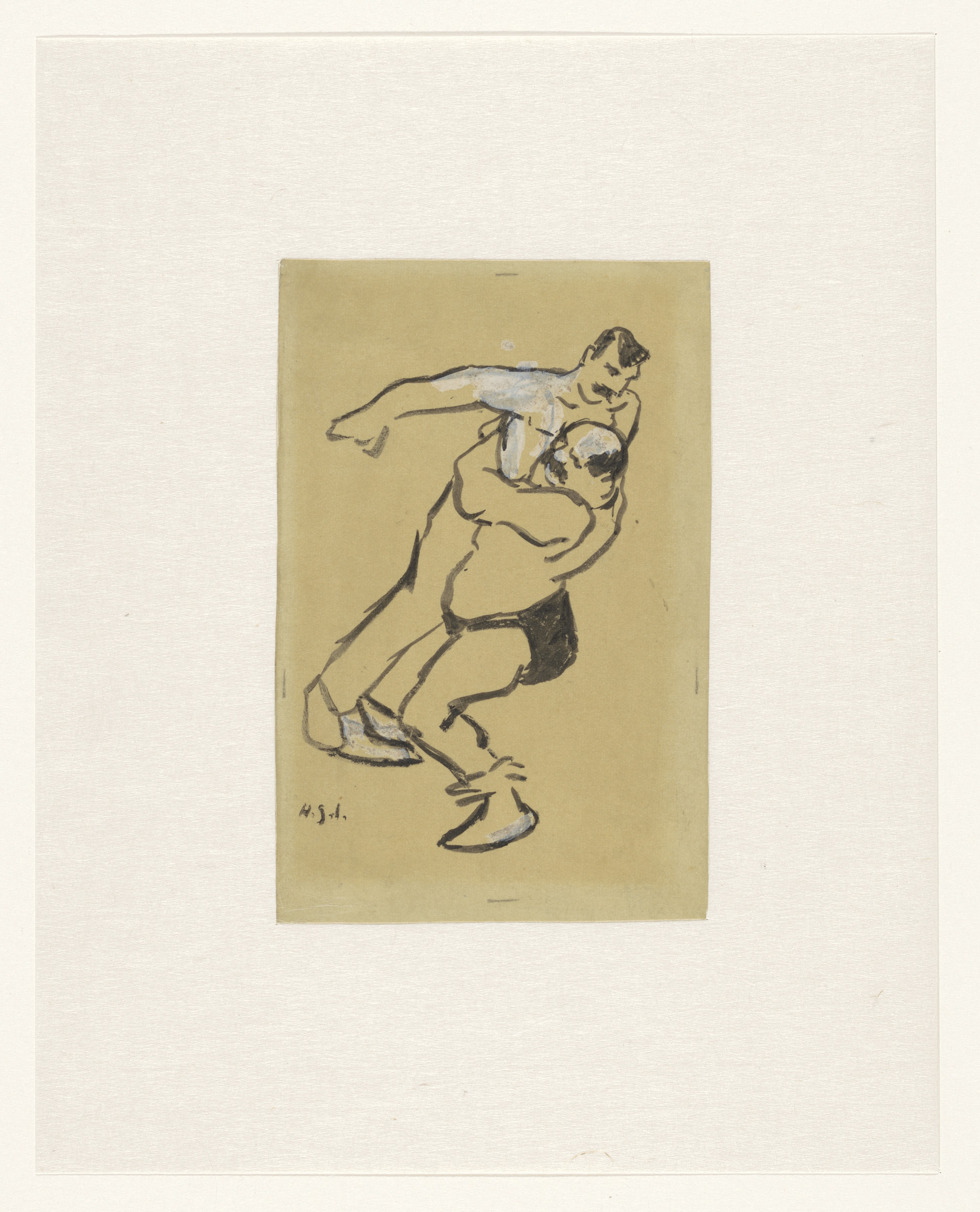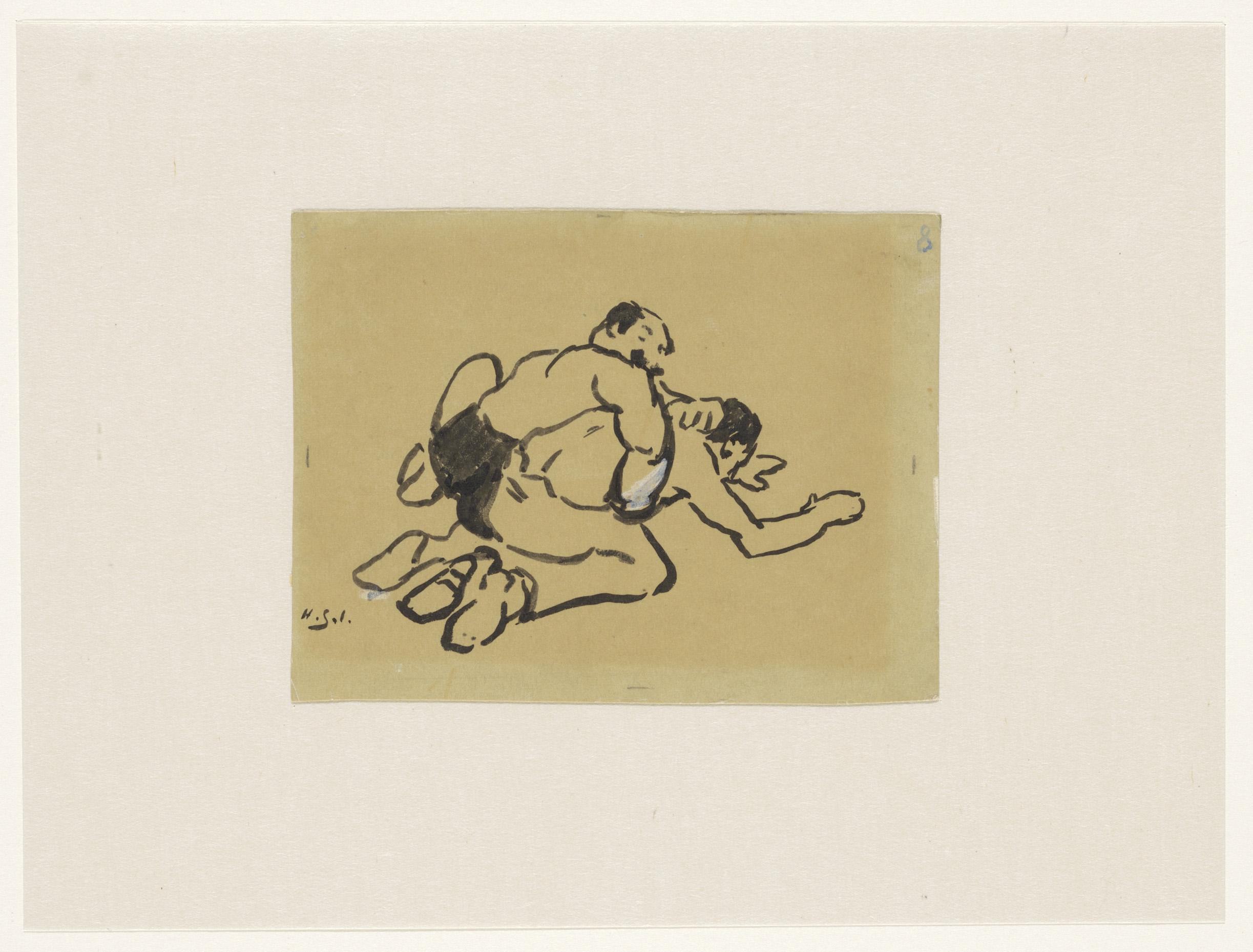 Knielende en een neerhurkende worstelaar