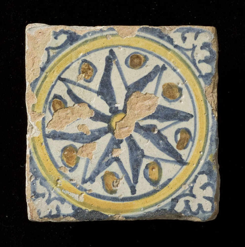 Vloertegel van keramiek, opglazuur, waarschijnlijk g...