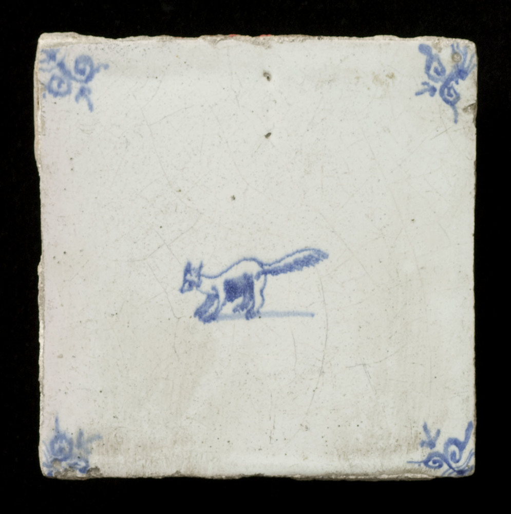 Tegel in tinglazuur, voorstellende vos, vervaardigd ...