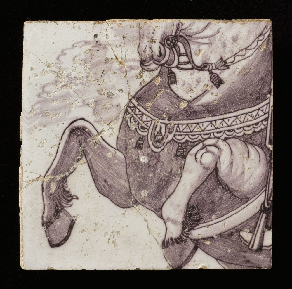 Tegel van keramiek, tinglazuur, voorstellende een my...