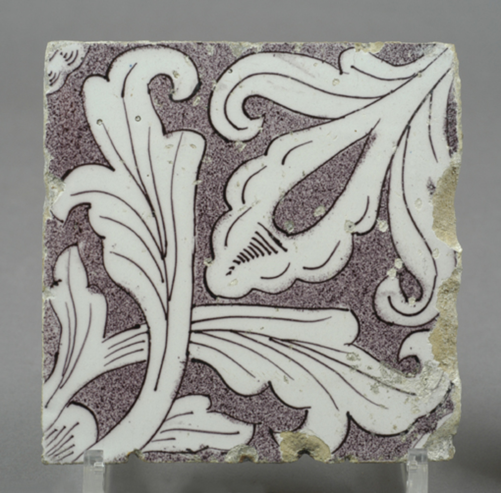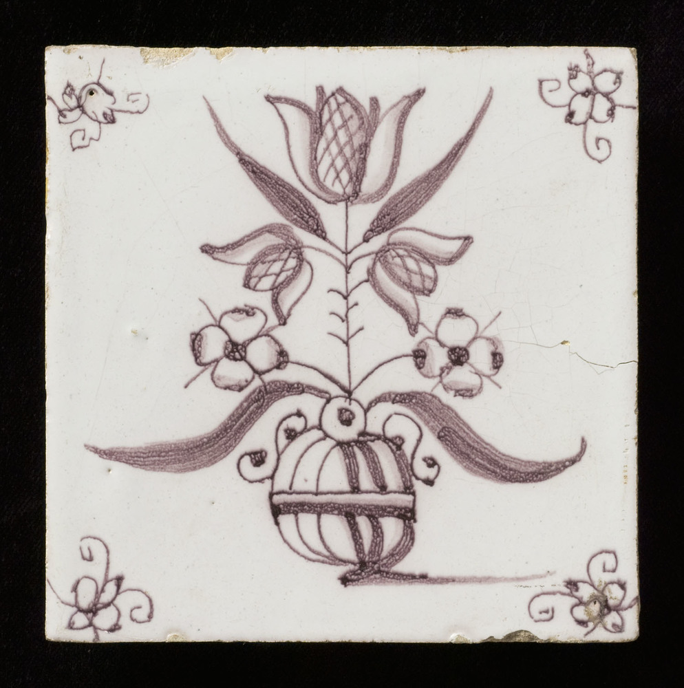 Tegel van keramiek, tinglazuur, voorstellende een bl...