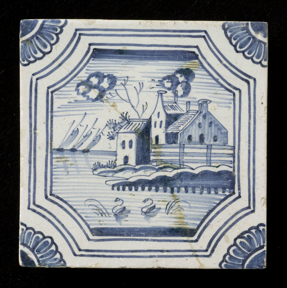 tegel van aardewerk met tinglazuur, voorstellende: h...