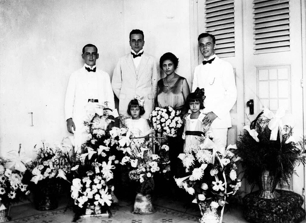 Een familieportret van een Europees-Indische familie...