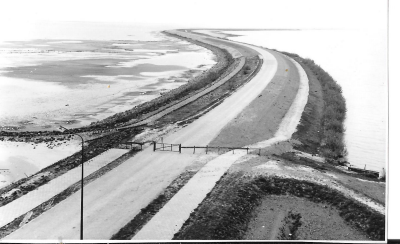 Voltooid gedeelte van de dijk van Oostelijk Flevolan...