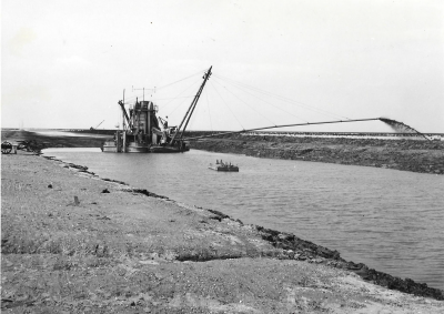 Baggermolen baggert slib uit een kanaal dat al vóór ...