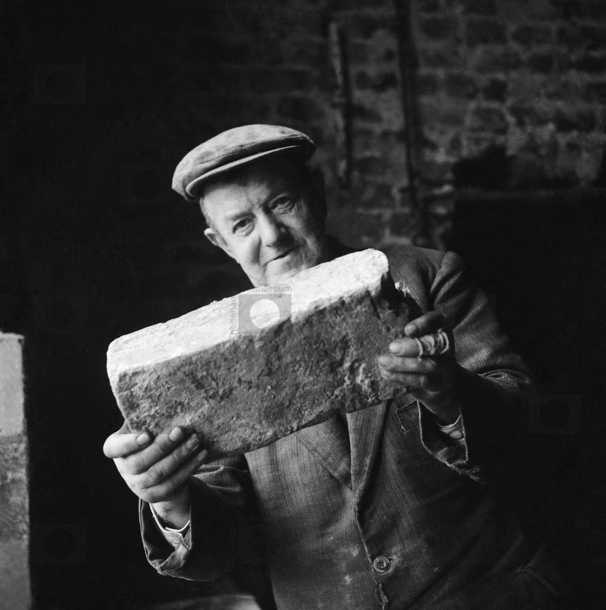 Man toont baksteen, Slot Moermond, Renesse, Zeeland ...