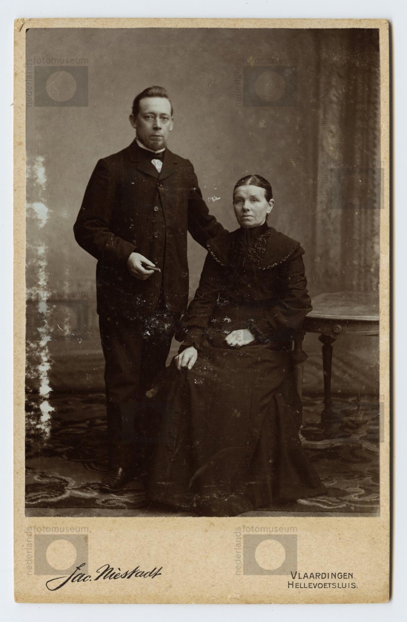 Kabinetfoto, dubbelportret van vrouw en man in burge...