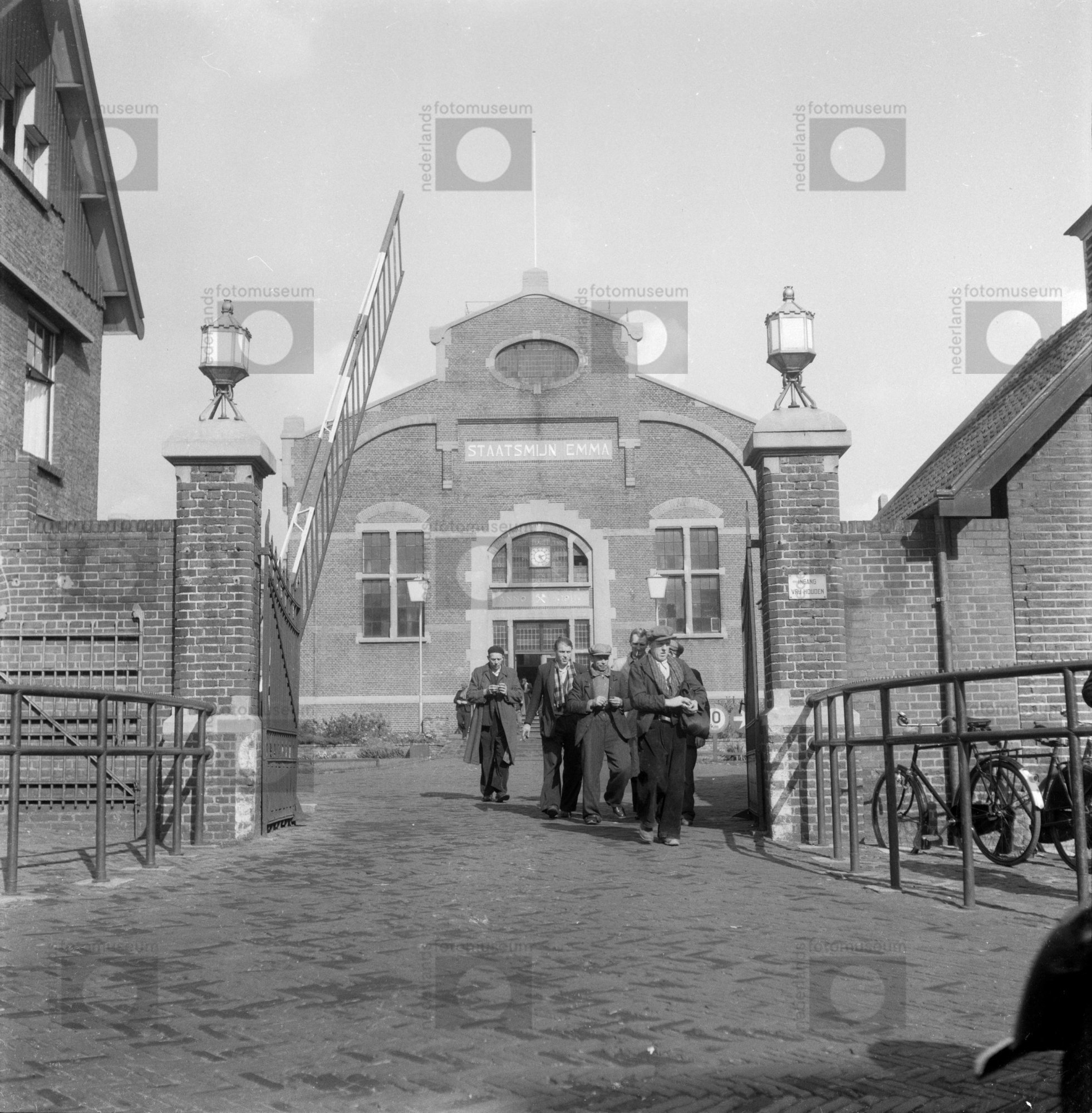 Mijnwerkers verlaten na werktijd Staatsmijn Emma, Ho...