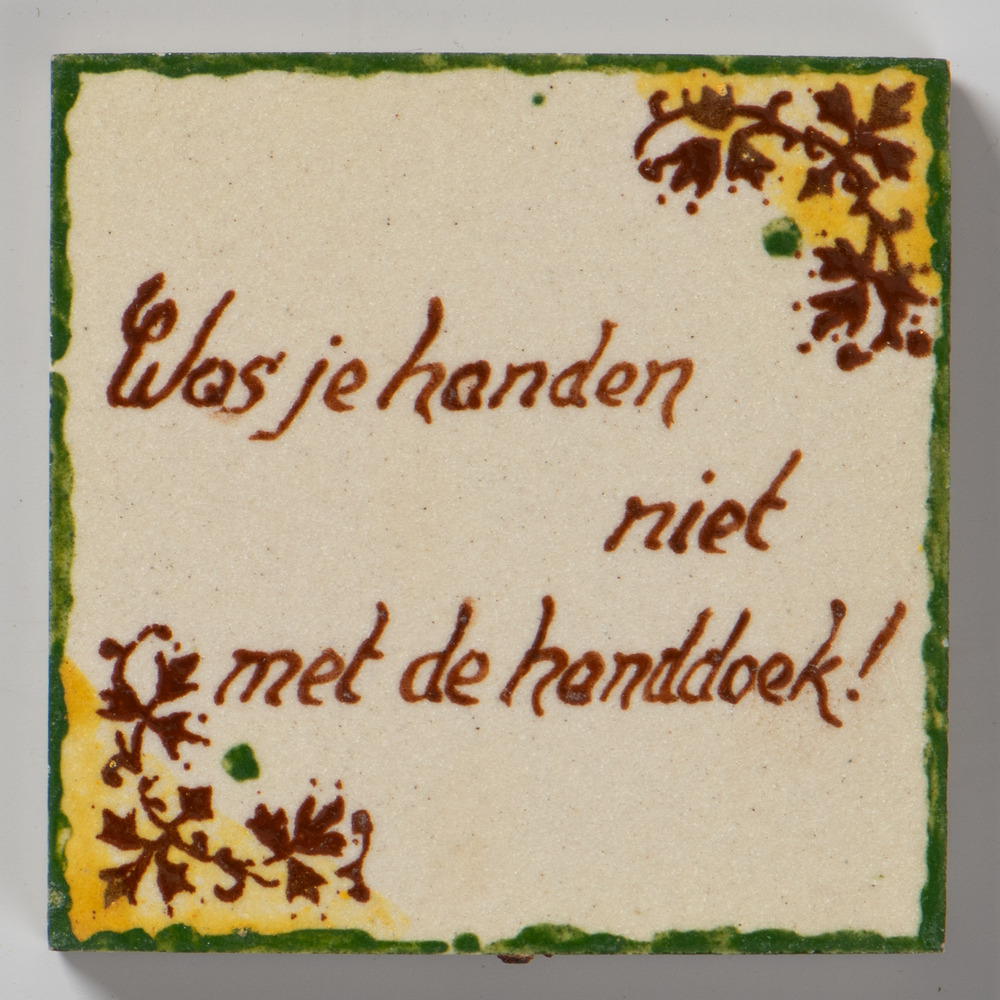 tegel van keramiek in opglazuur, voorstellende: teks...